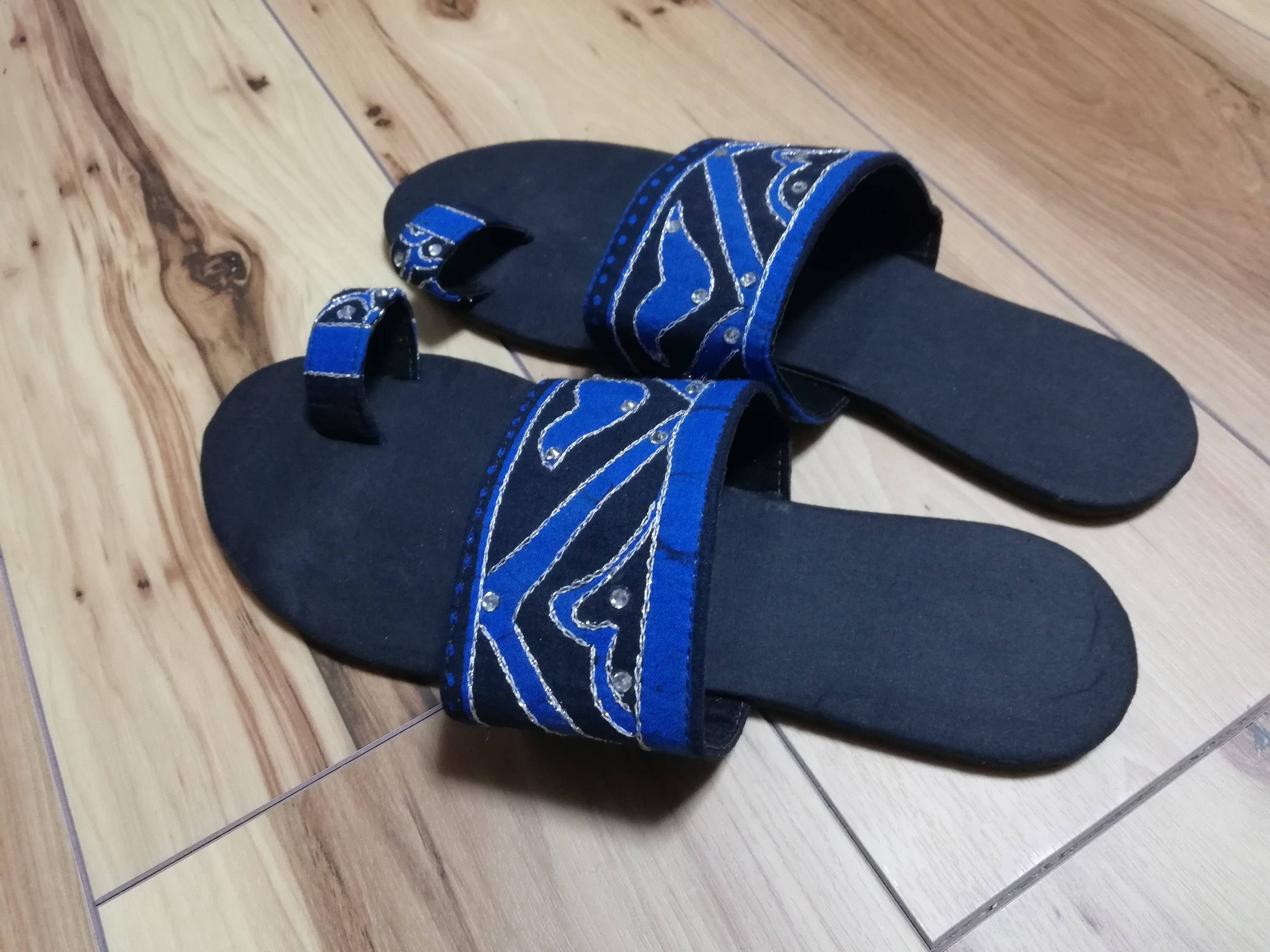 スリランカの生地を使いハンドメイドで作られたサンダルです!ビーズで所々装飾されています!