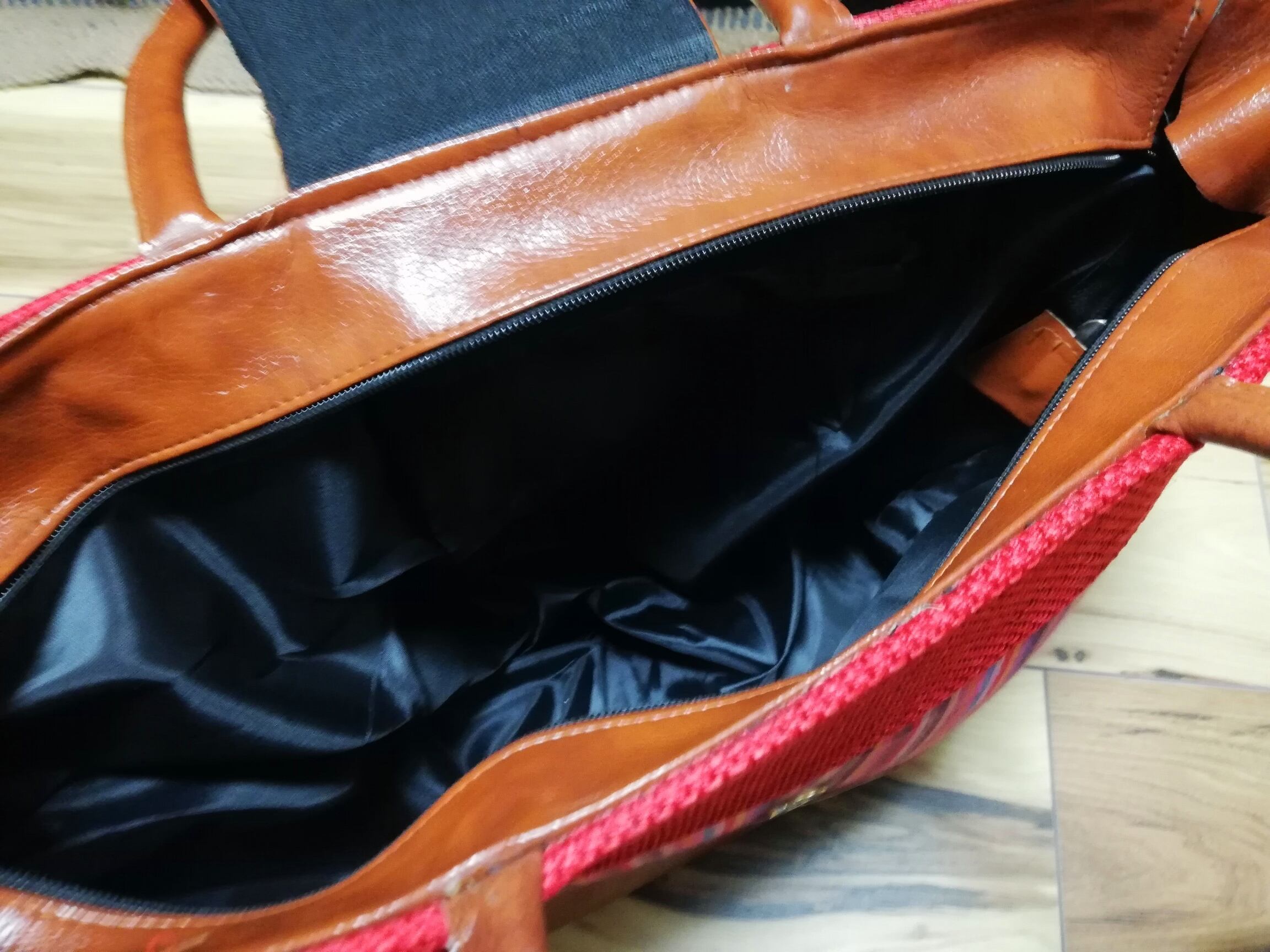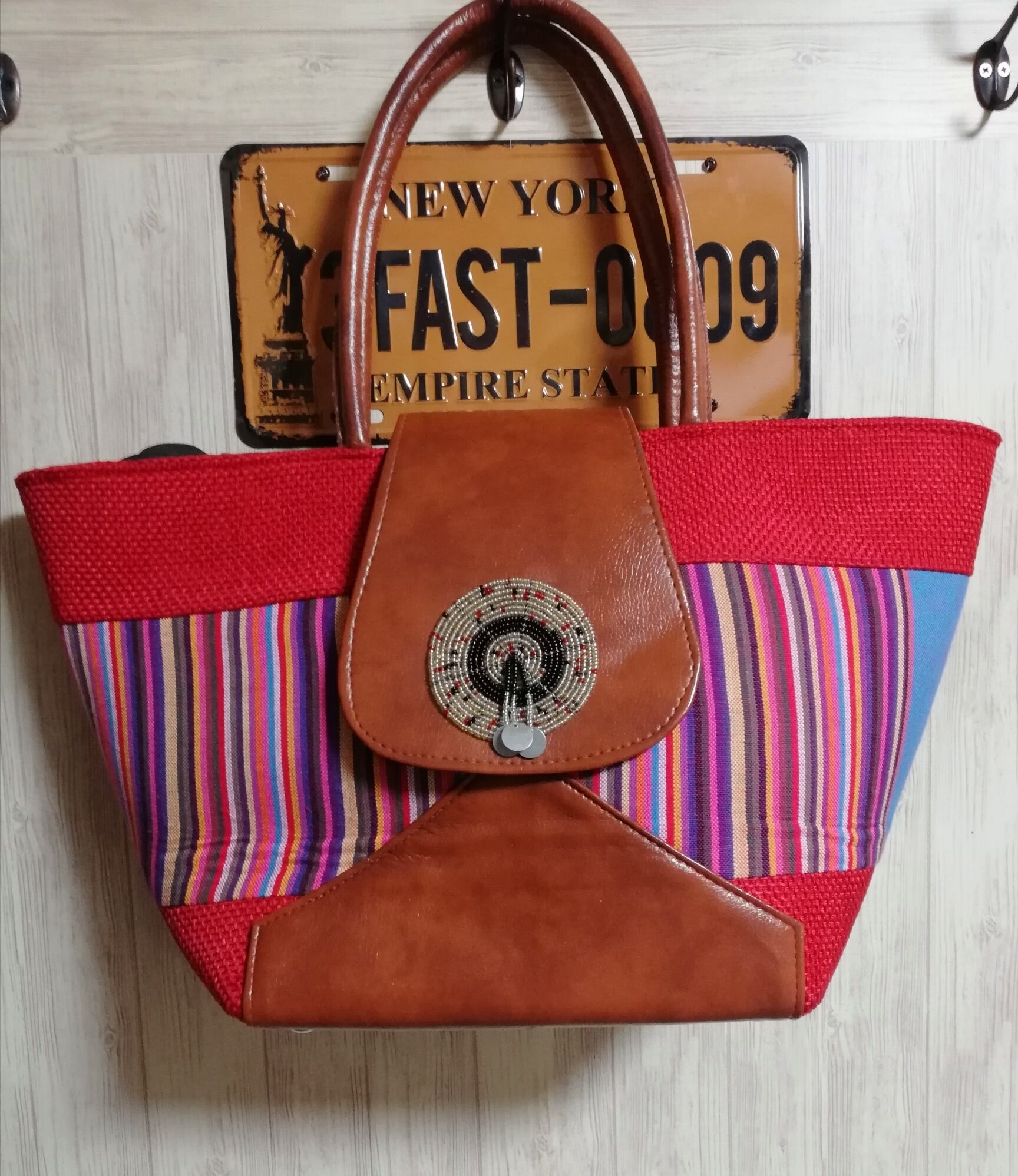 ガーナ産のカラフルな生地とレザーを組み合わせアフリカンビーズで装飾した可愛らしいハンドメイドのトートバッグです!日本から遠い西アフリカの国ガーナのリアルな商品です!