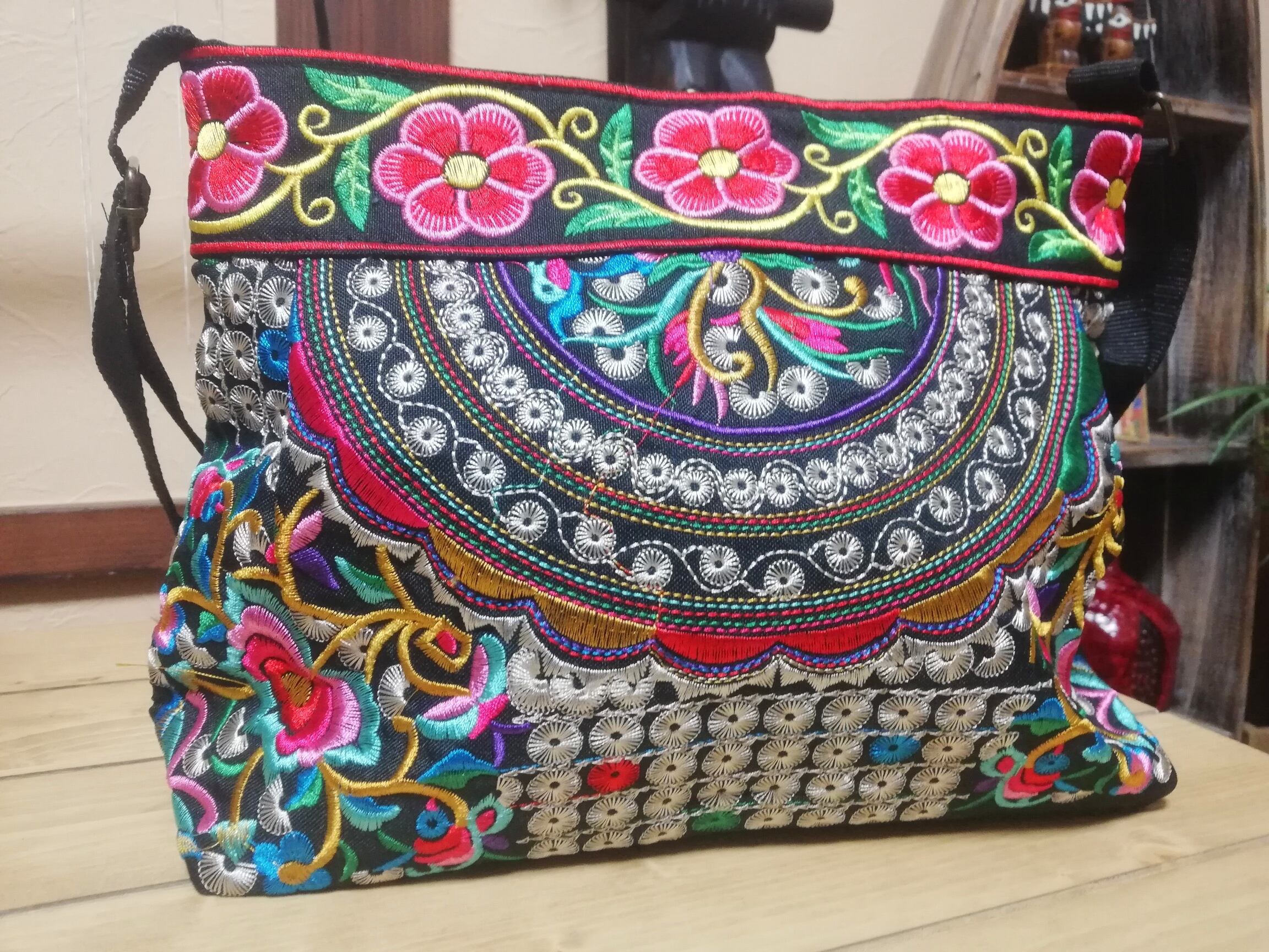 スリランカの刺繍バッグです!鮮やかな花柄が綺麗なバッグです!(^^)