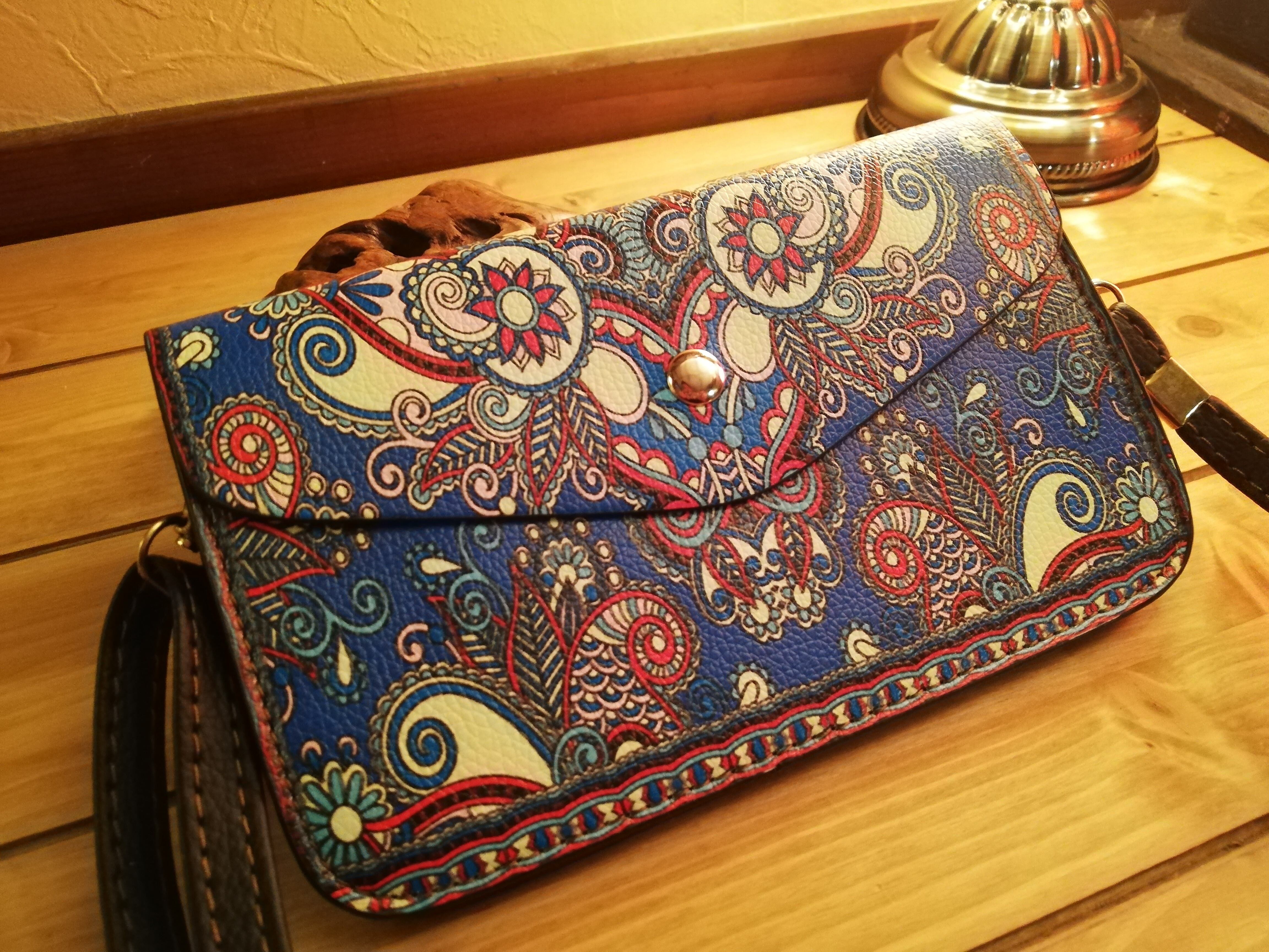 ウイグル族のトラディショナルアートをデザインにした小ぶりで可愛らしい革バッグで、ショルダー部は取り外せるのでポーチとしても使え、内側にはカード類を入れられるサイドポケットが付いています!SHAKEHANDS独特の世界外観を楽しめる商品です(^^)