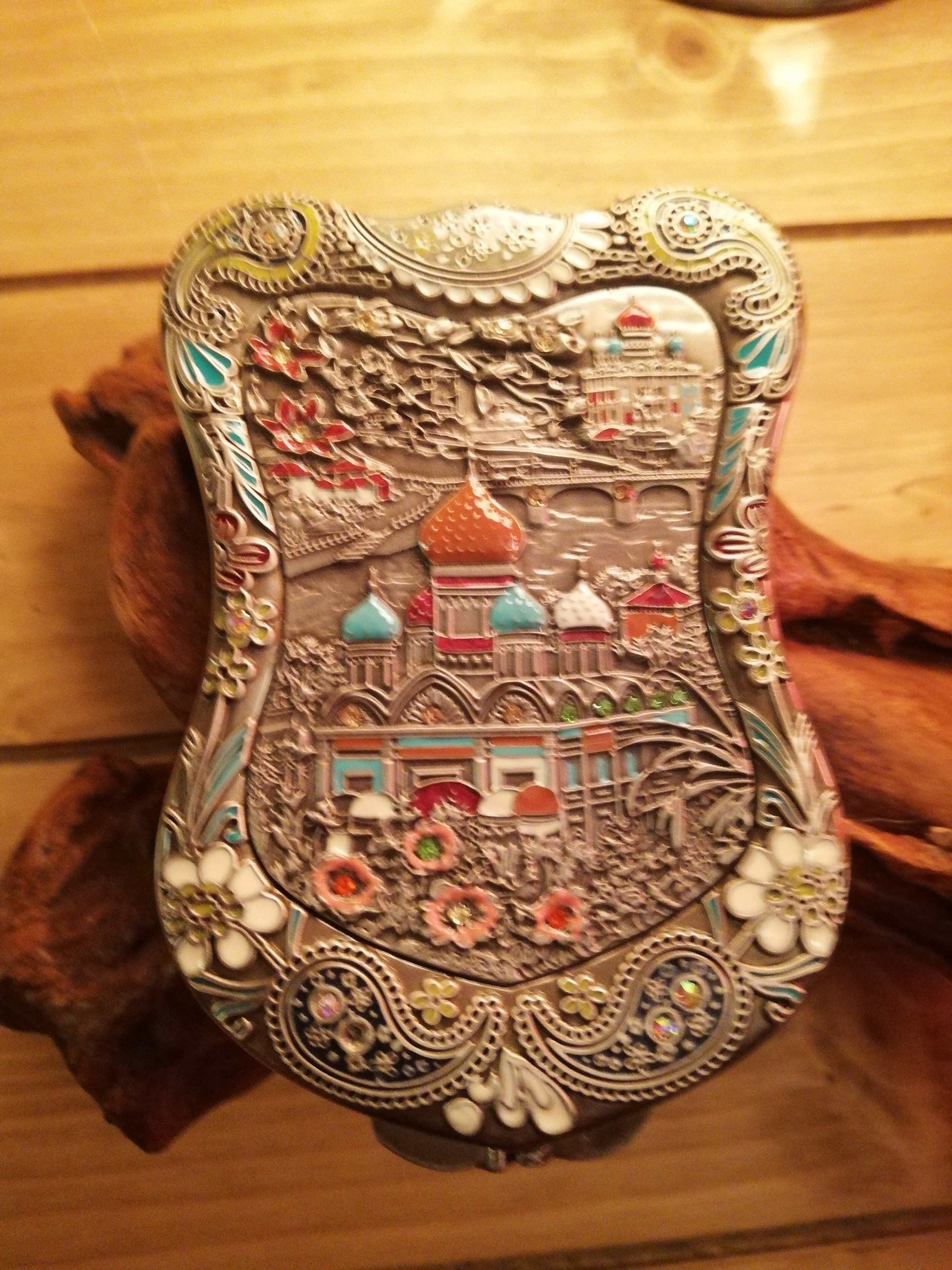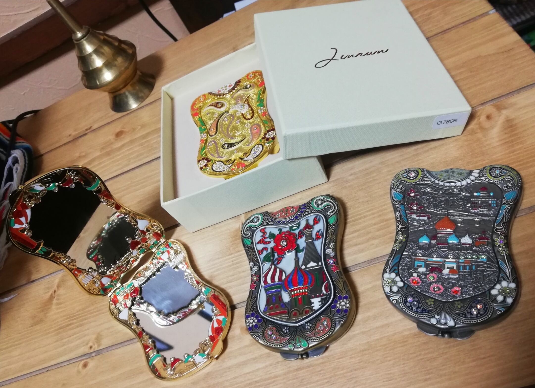 ウイグルオリジナルのコンパクトミラーです!ずっしりとした重量観と細かい部分まで拘りぬいてデザインされた高級感溢れるこの鏡は希少価値抜群でプレゼントとしても喜ばれます(^^)