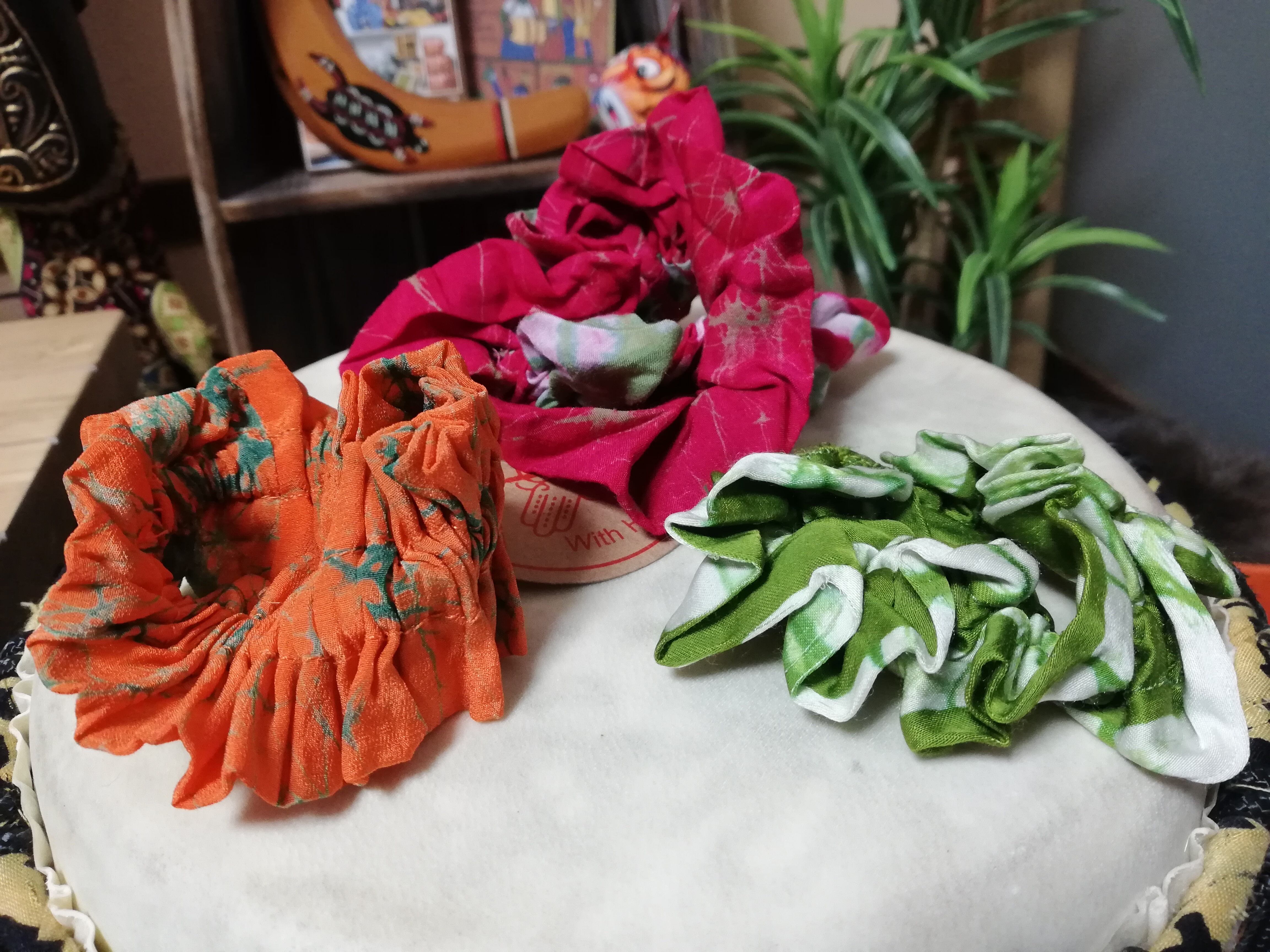 スリランカの生地を使って作られたシュシュセットです!南国スリランカのシュシュをその日の気分で使い分けてみてはいかがでしょうか?(^^)