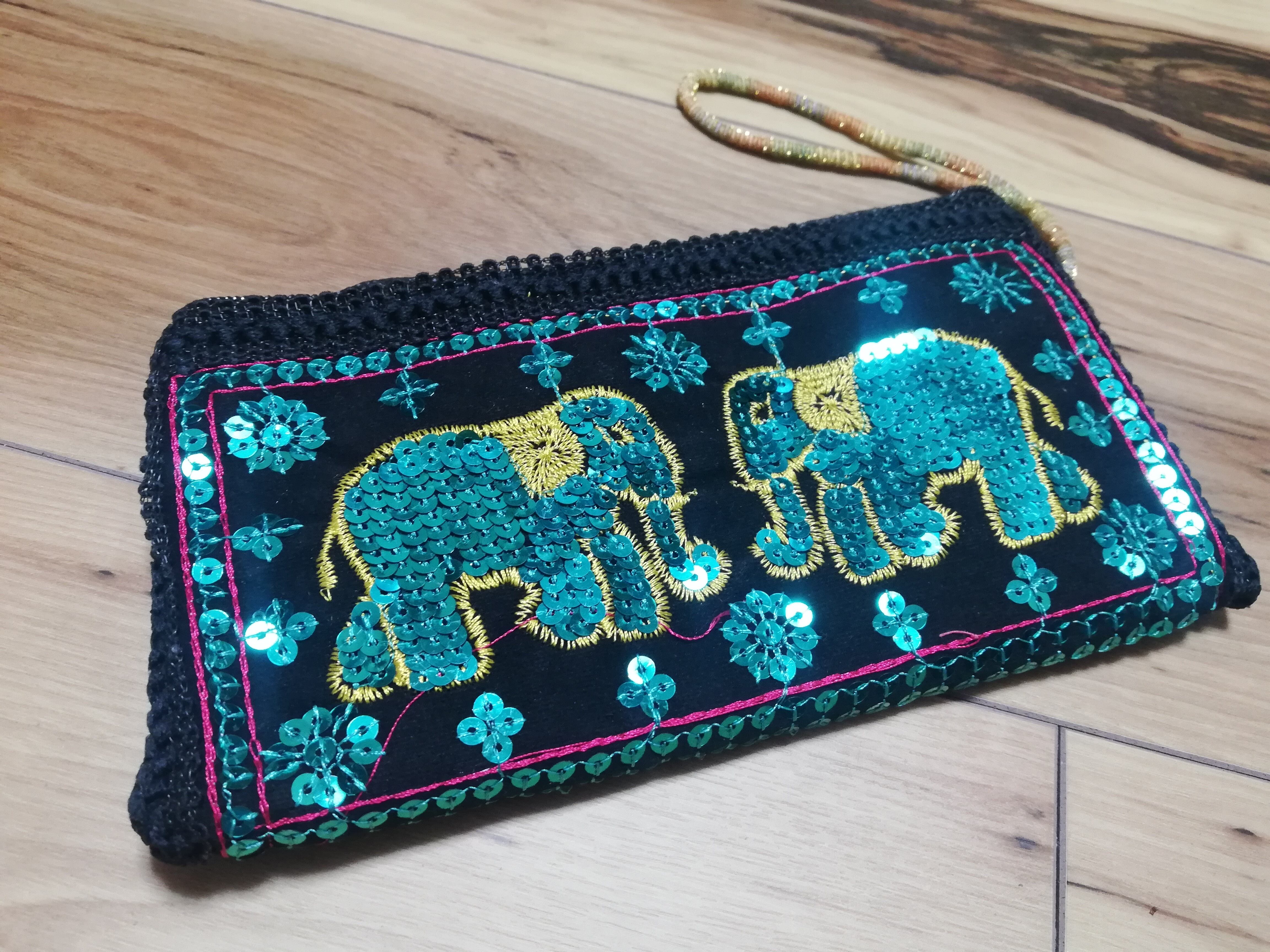 スリランカ産の鮮やかなハンドメイドポーチです(^^)