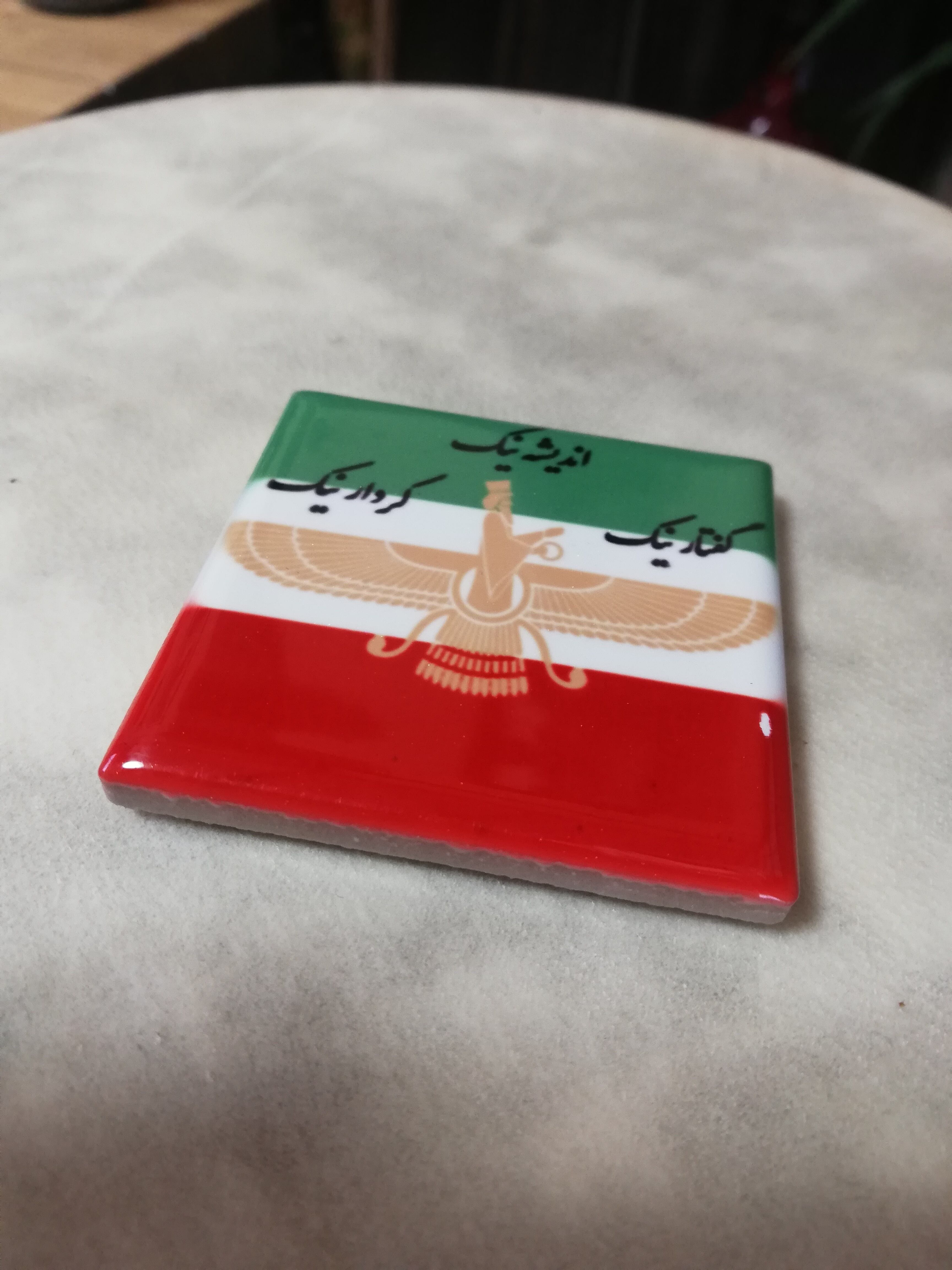 イラン産のタイルをイラン国旗柄にデザインしたマグネットです!!