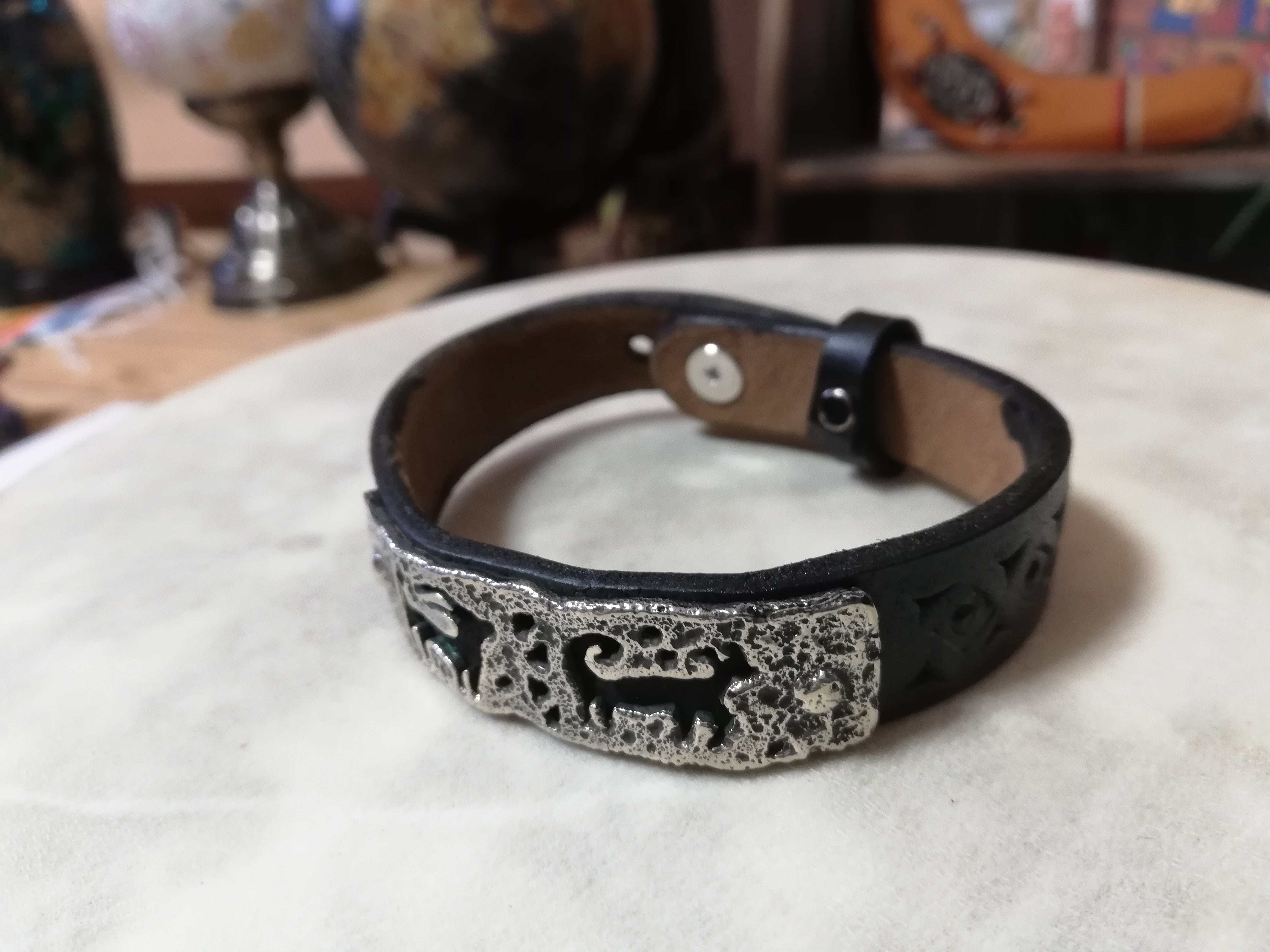 アルメニアのレザー職人が古代アルメニアをモチーフに作ったハンドメイドのブレスレットで、