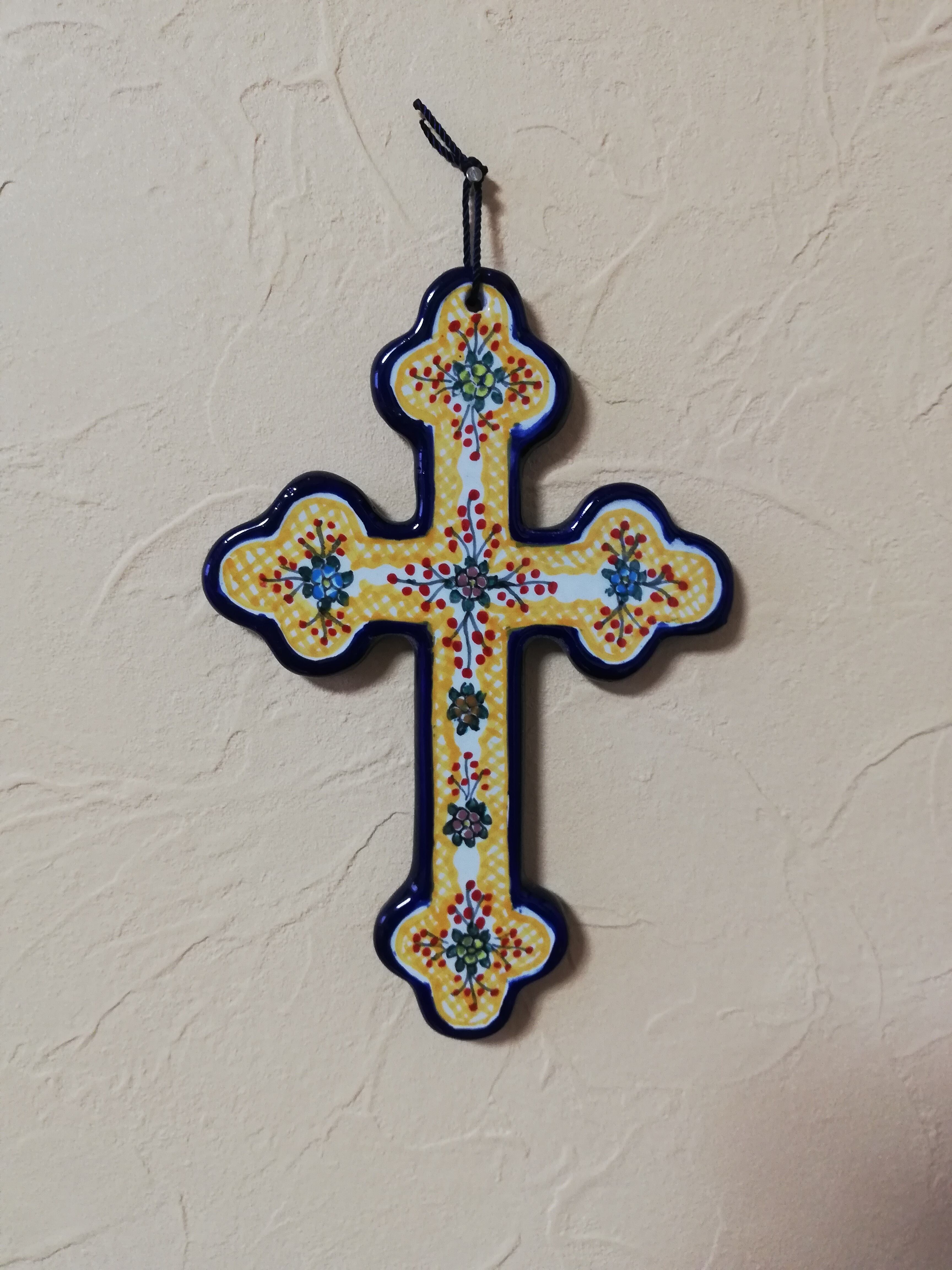 陶器で出来たメキシカンクロスにメキシコのアーティストが絵を描いたオブジェです!!