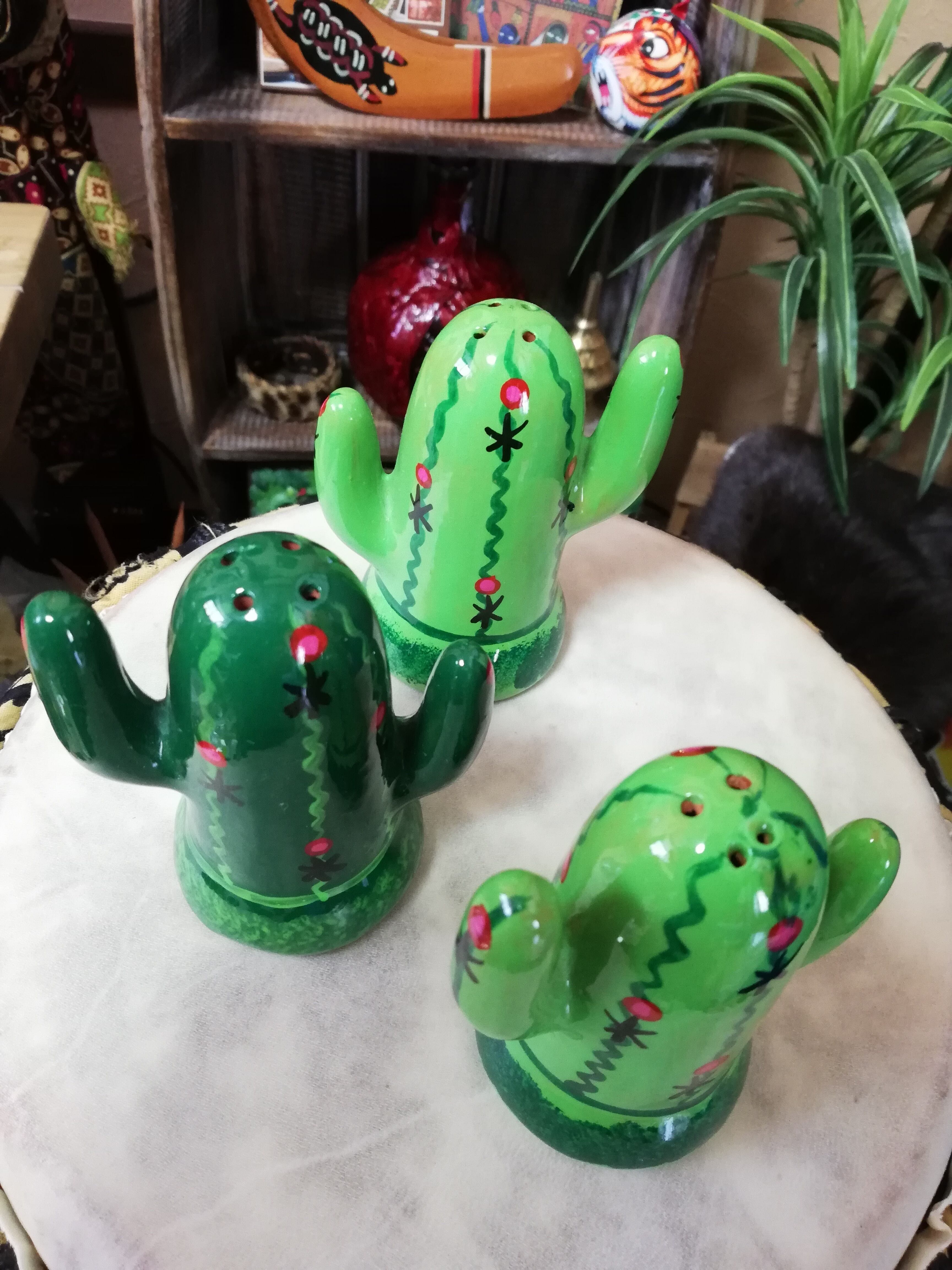 サボテン形の陶器にメキシコアーティストが絵を描いたペッパー入れです!