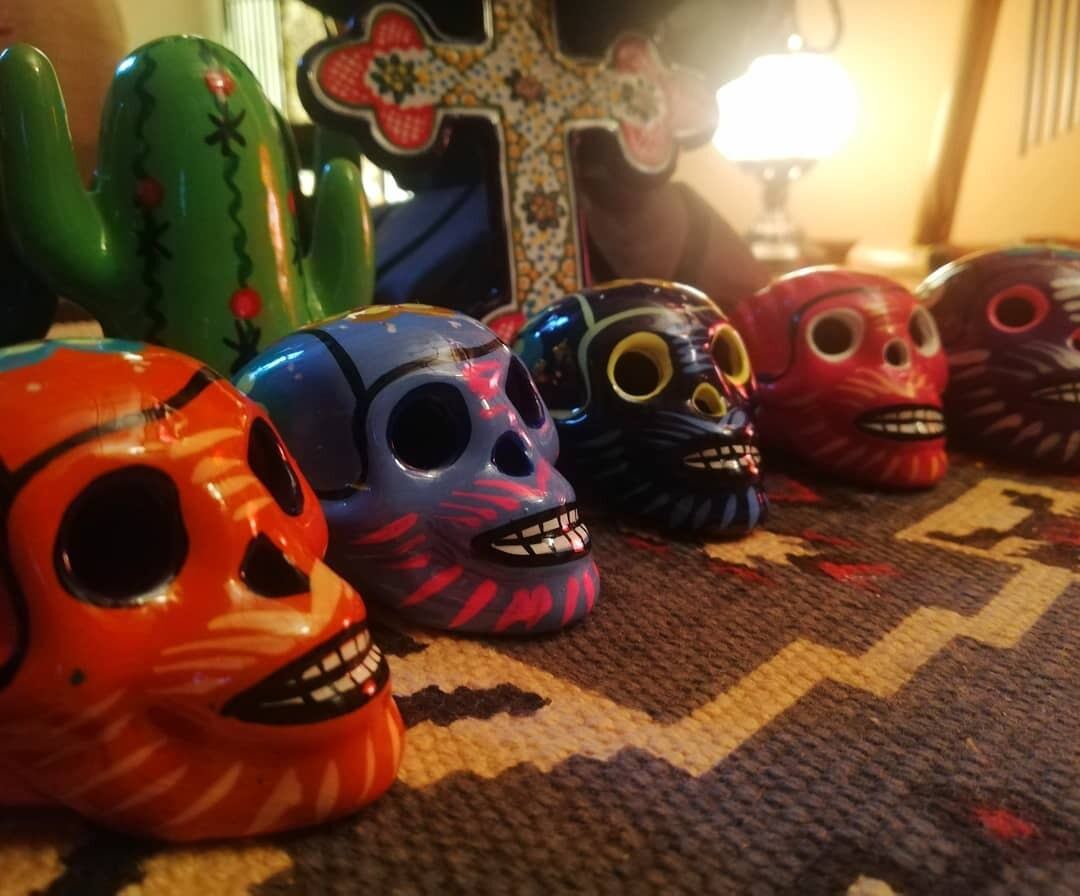 陶器で作られたスカルにメキシカンアーティストがハンドメイドペイントした可愛らしいオブジェです!(^^)並べるとさらにかわいいです!!