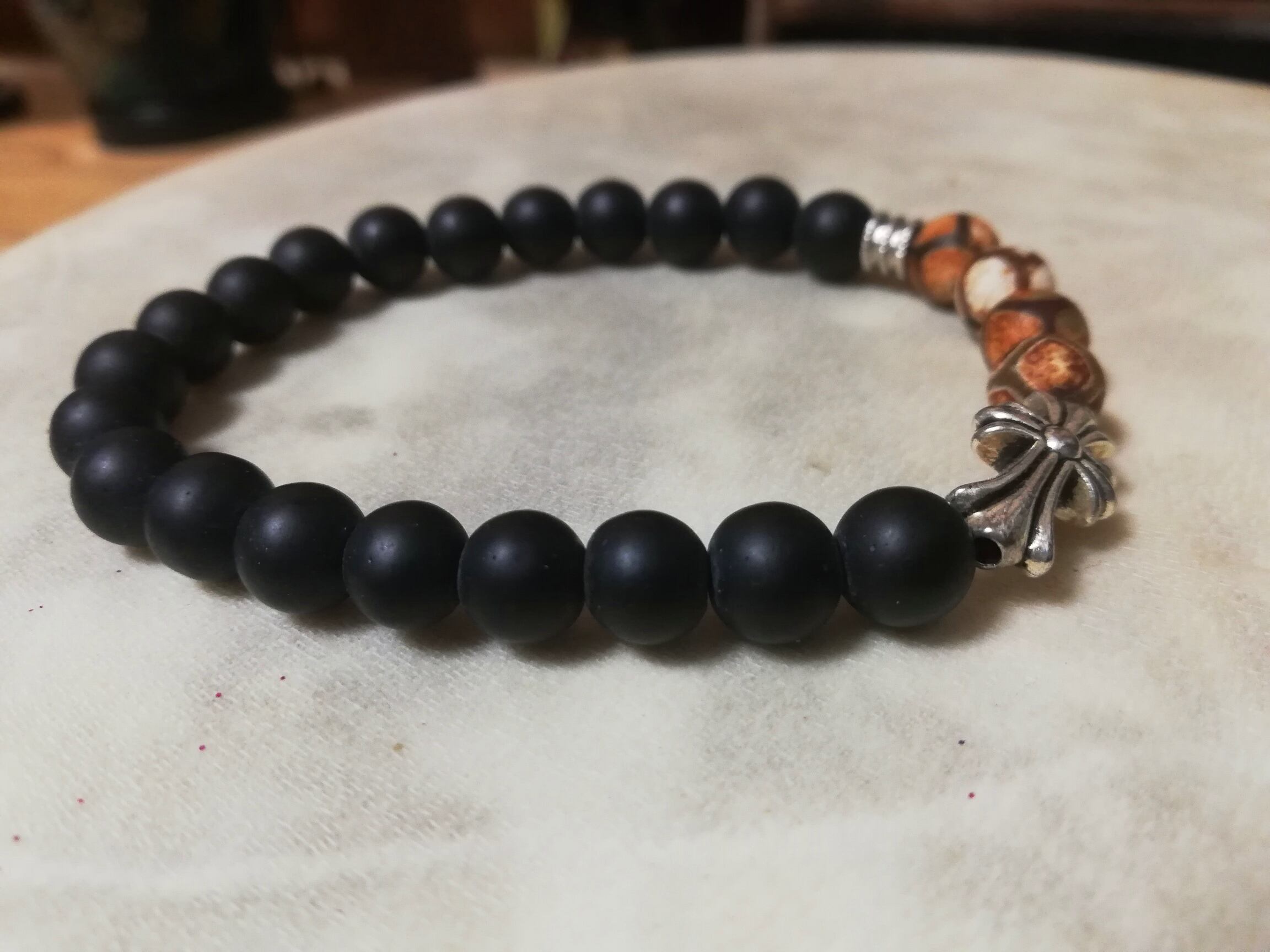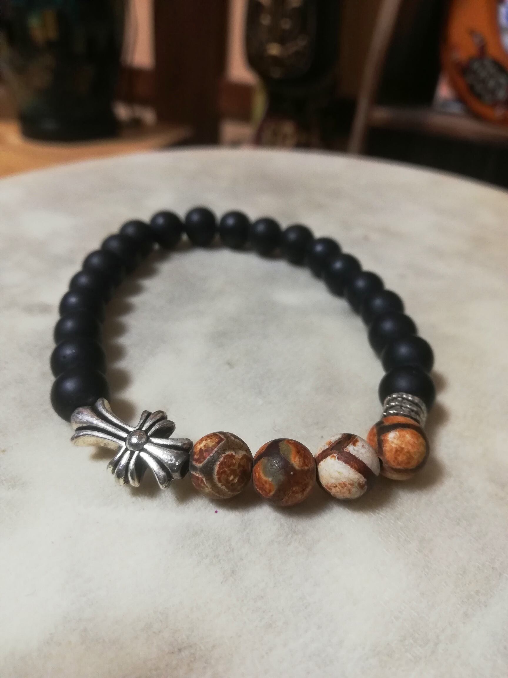 シルバーの十字架とアフリカンストーンを組み合わせたハンドメイドブレスレットです!