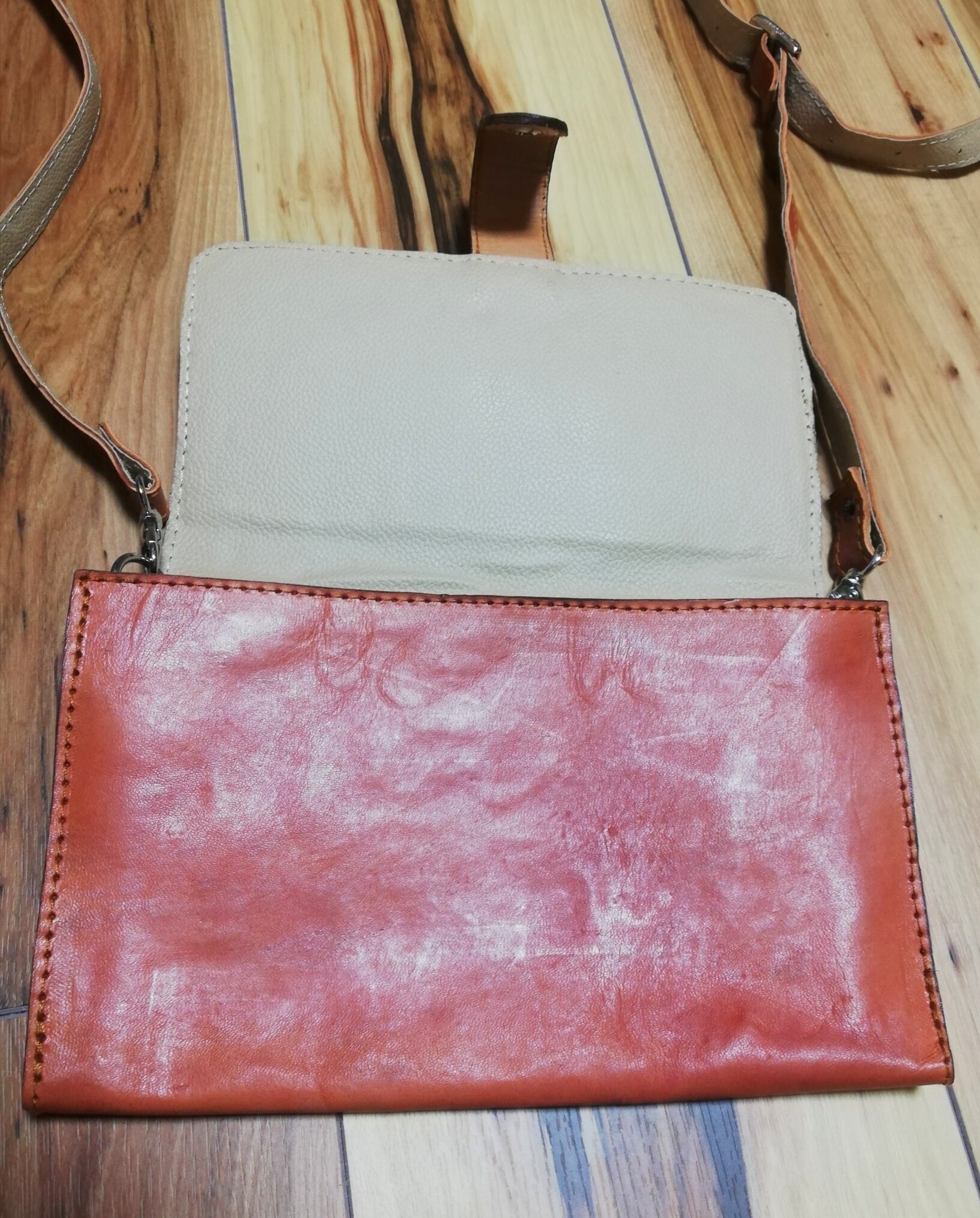 キューバオリジナルのハンドメイドショルダーバッグです!!色の違うレザーを組み合わせて作ったバッグで色合いがどこかレトロ感を感じるバッグです!