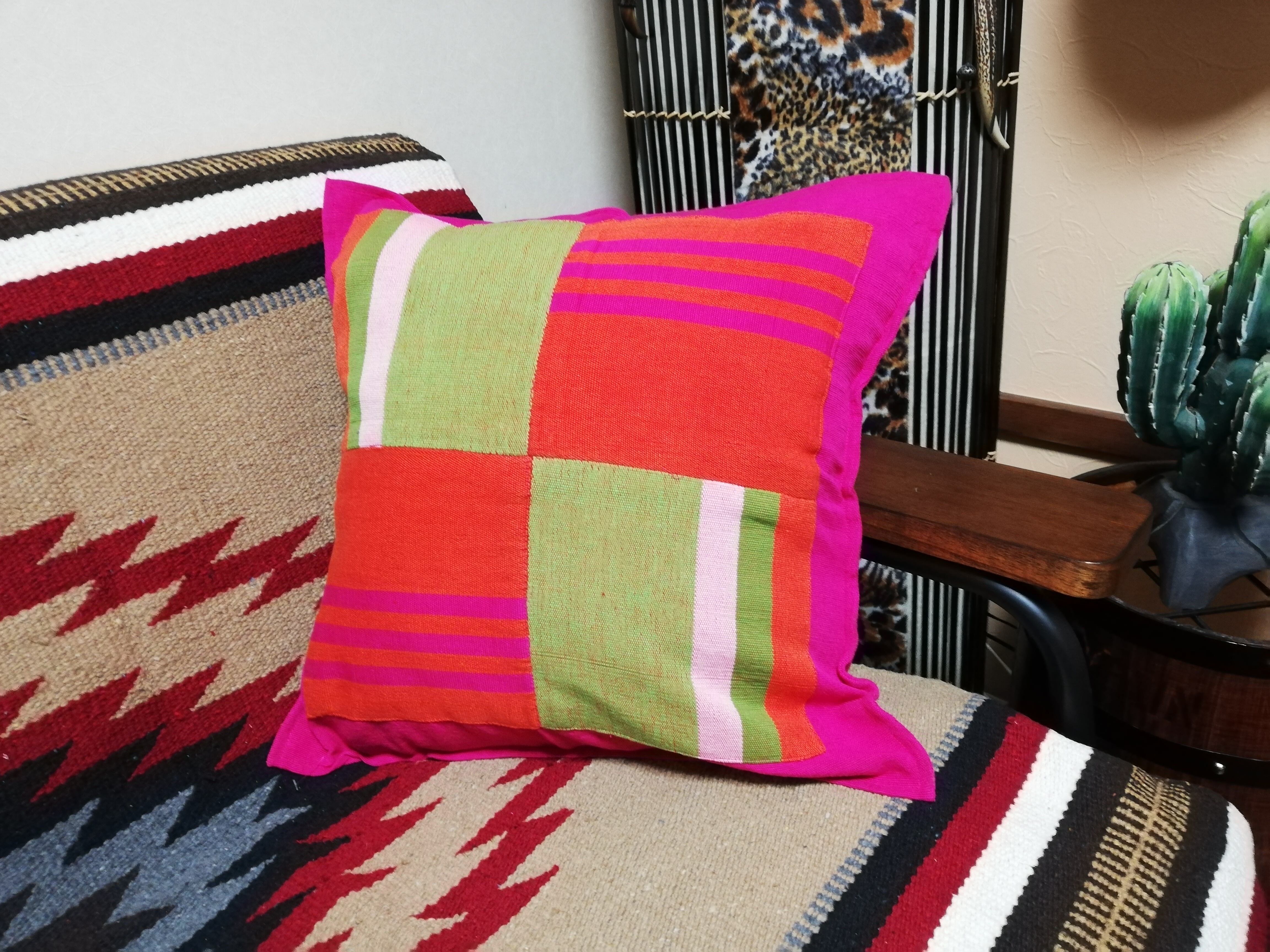 スリランカの生地をパッチワークデザインしたハンドメイドのとてもかわいいクッションカバーです!(^^)
