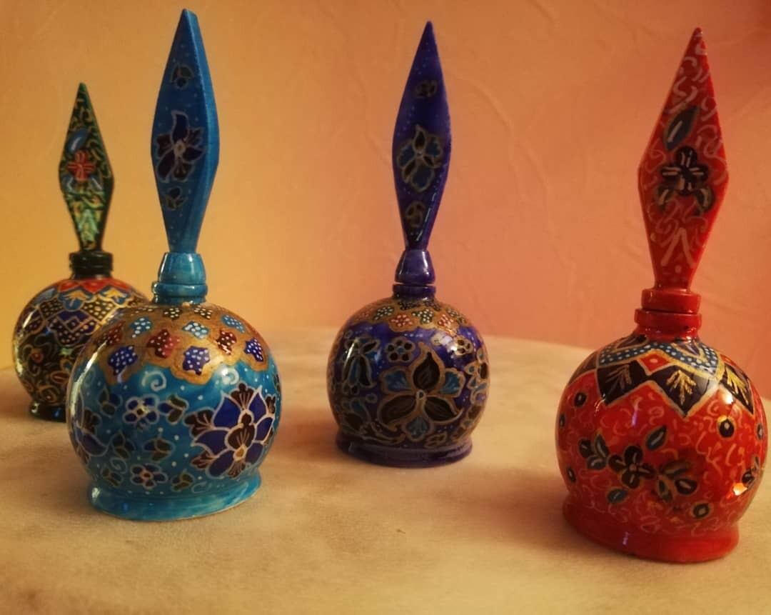 こちらも勿論ラクダの骨で出来ていてその上に細かなタッチでハンドペイントをした非常に綺麗な仕上がりになっています!実際に昔のイラン人女性の気分になり使用も可能ですが並べて飾ると非常に綺麗です!!