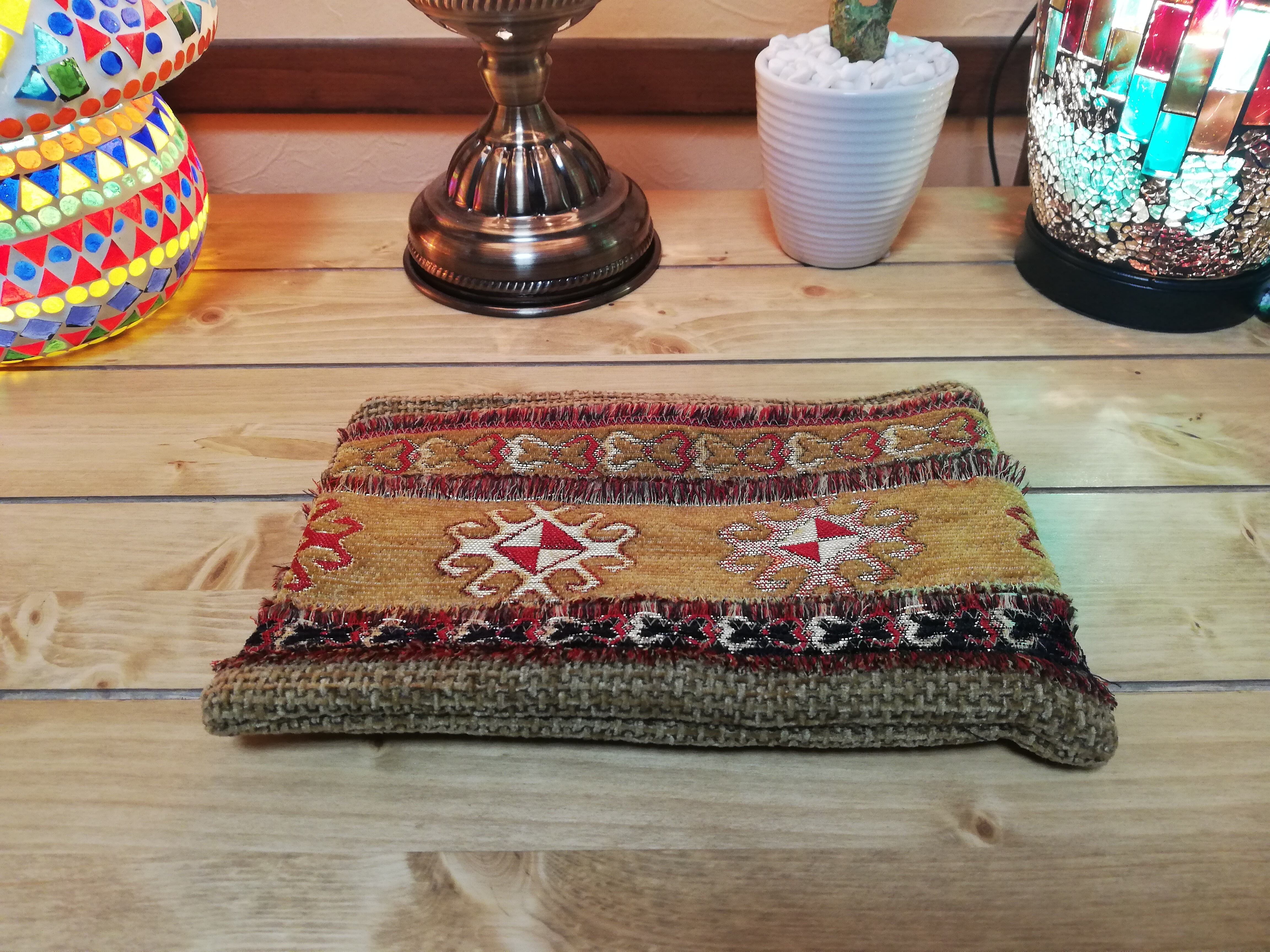 アルメニアの数種類の生地を組み合わせて手作りで作られた一点物のポーチです!(^^) 厚手の生地を使用しているので丈夫です!! サイズ 縦13 幅22cm