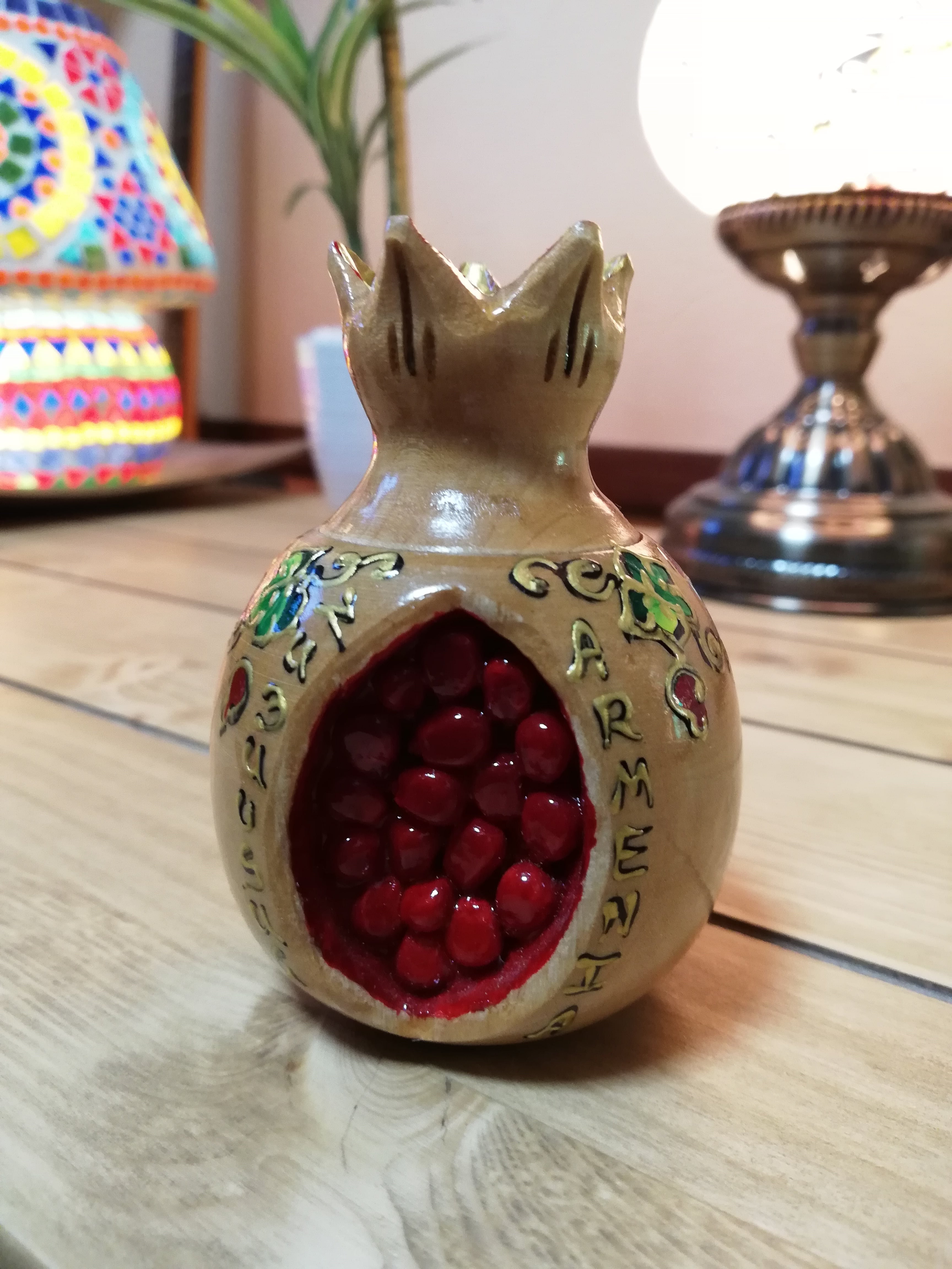 アルメニアのシンボルとなるザクロをモチーフに作ったハンドメイドの木製ペッパー入れです!!(^^)