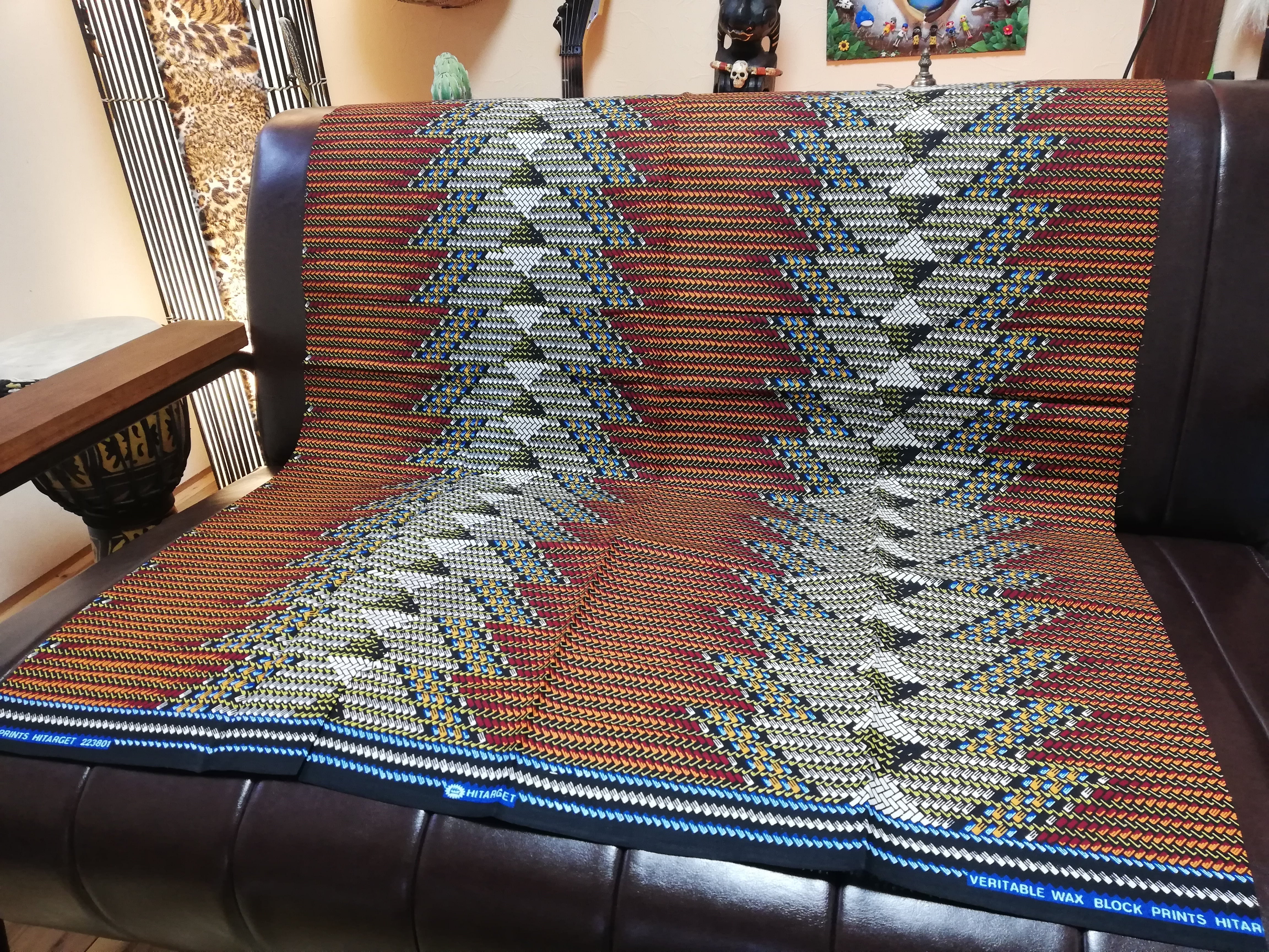 ケンテは、ガーナのアカン族特有の民族衣装で、シルクやコットンから出来ていて、遥か昔ガーナに実在したアシャンティ王国で作られたと言われ、そのアカン族の中でも王族のための神聖な民族衣装として使われていたようです。
