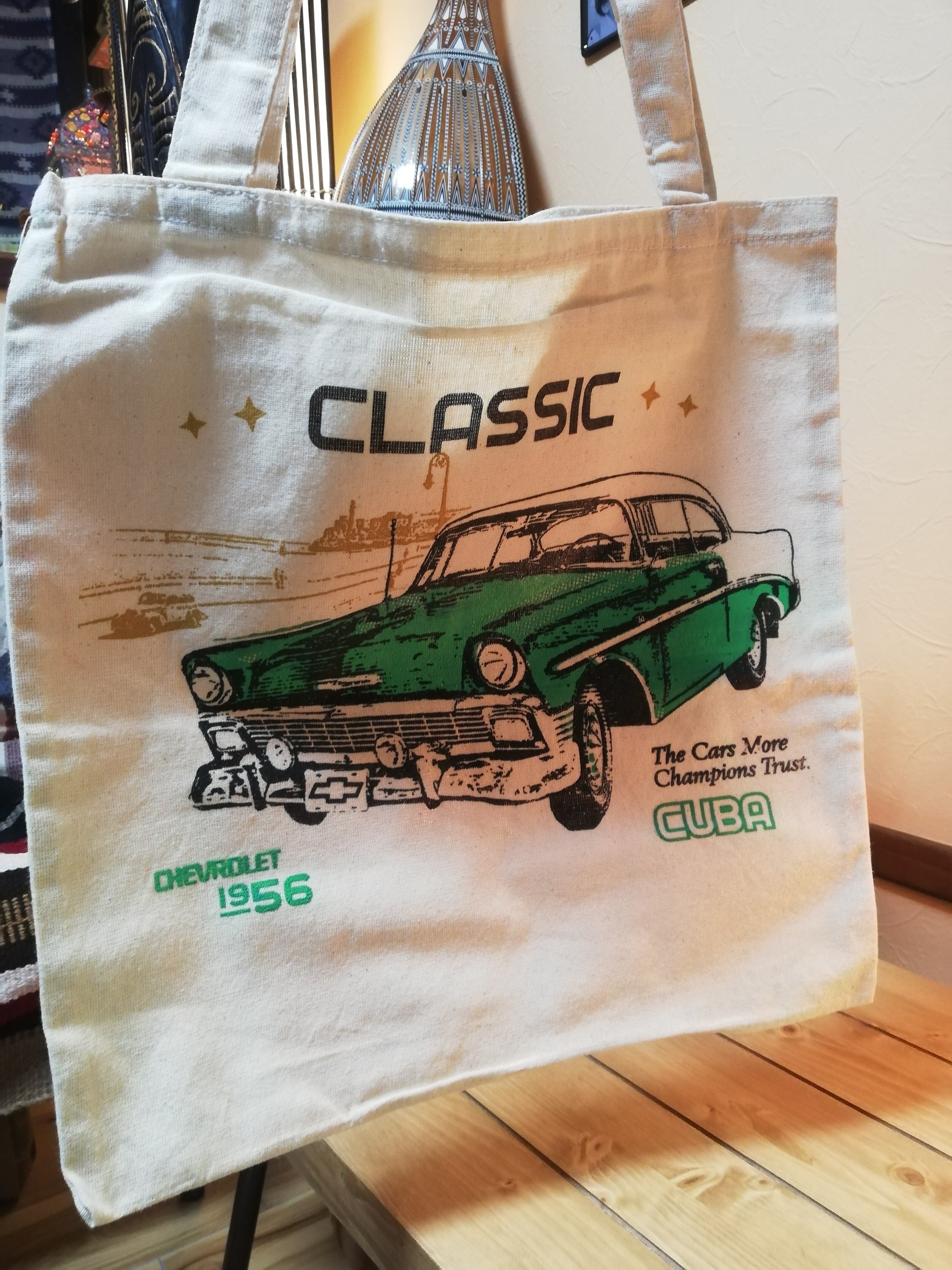 カリブ海に浮かぶ島国キューバの首都であるハバナ限定のハンドメイドトートバッグで、ちょっとしたお出かけや買い物袋として使える定番で便利な品物ですがキューバ限定でありながら模様がクラシックカーと言うところがキューバらしさ満点です(^^)