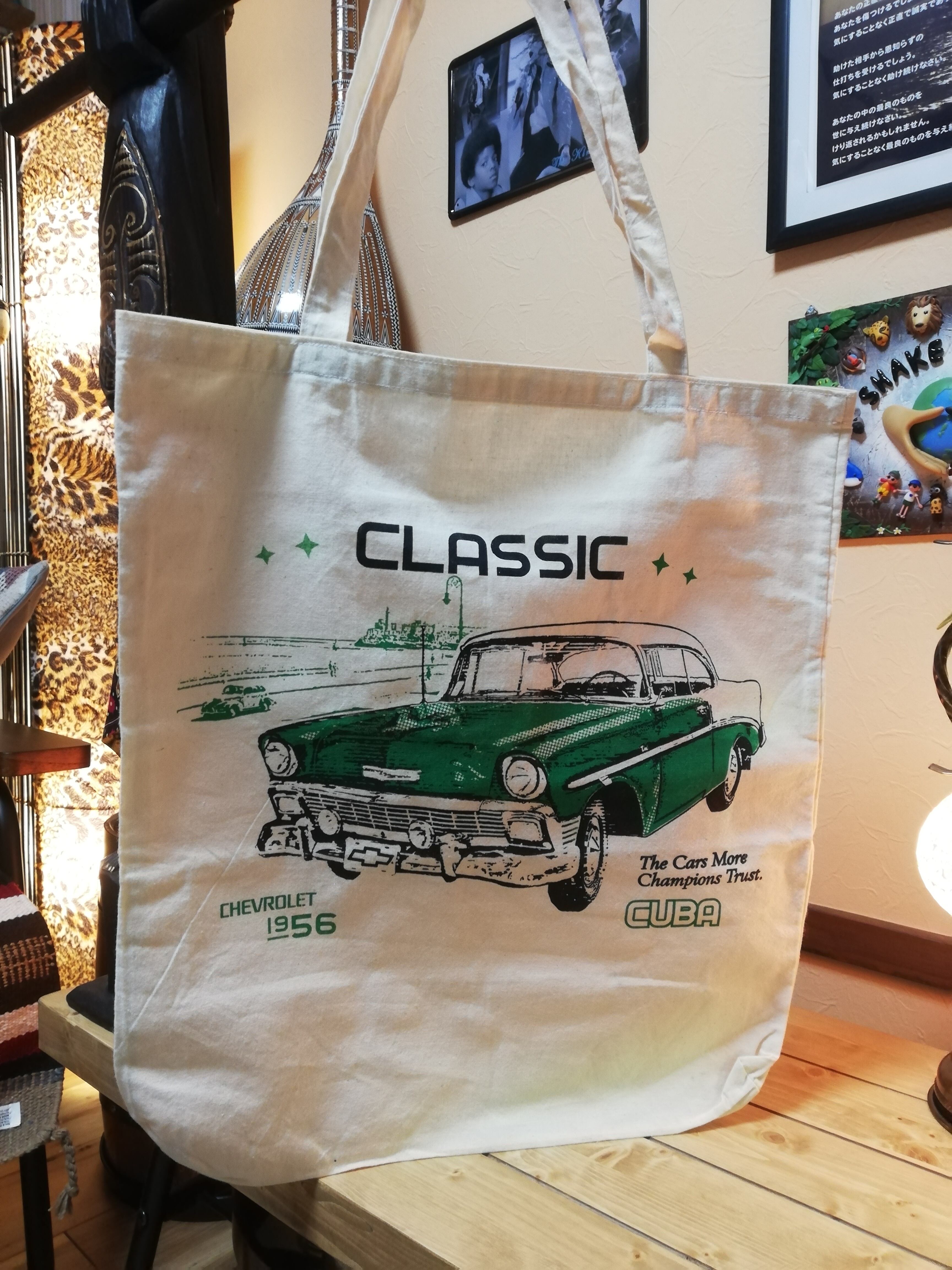 カリブ海に浮かぶ島国キューバの首都であるハバナ限定のハンドメイドトートバッグで、ちょっとしたお出かけや買い物袋として使える定番で便利な品物ですがキューバ限定でありながら模様がクラシックカーと言うところがキューバらしさ満点です(^^)