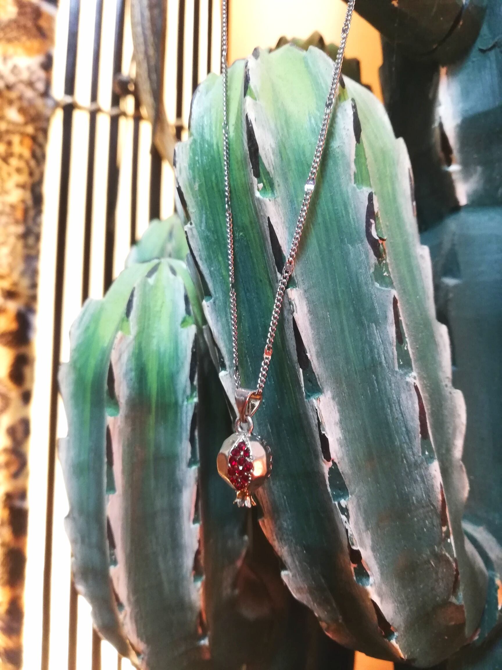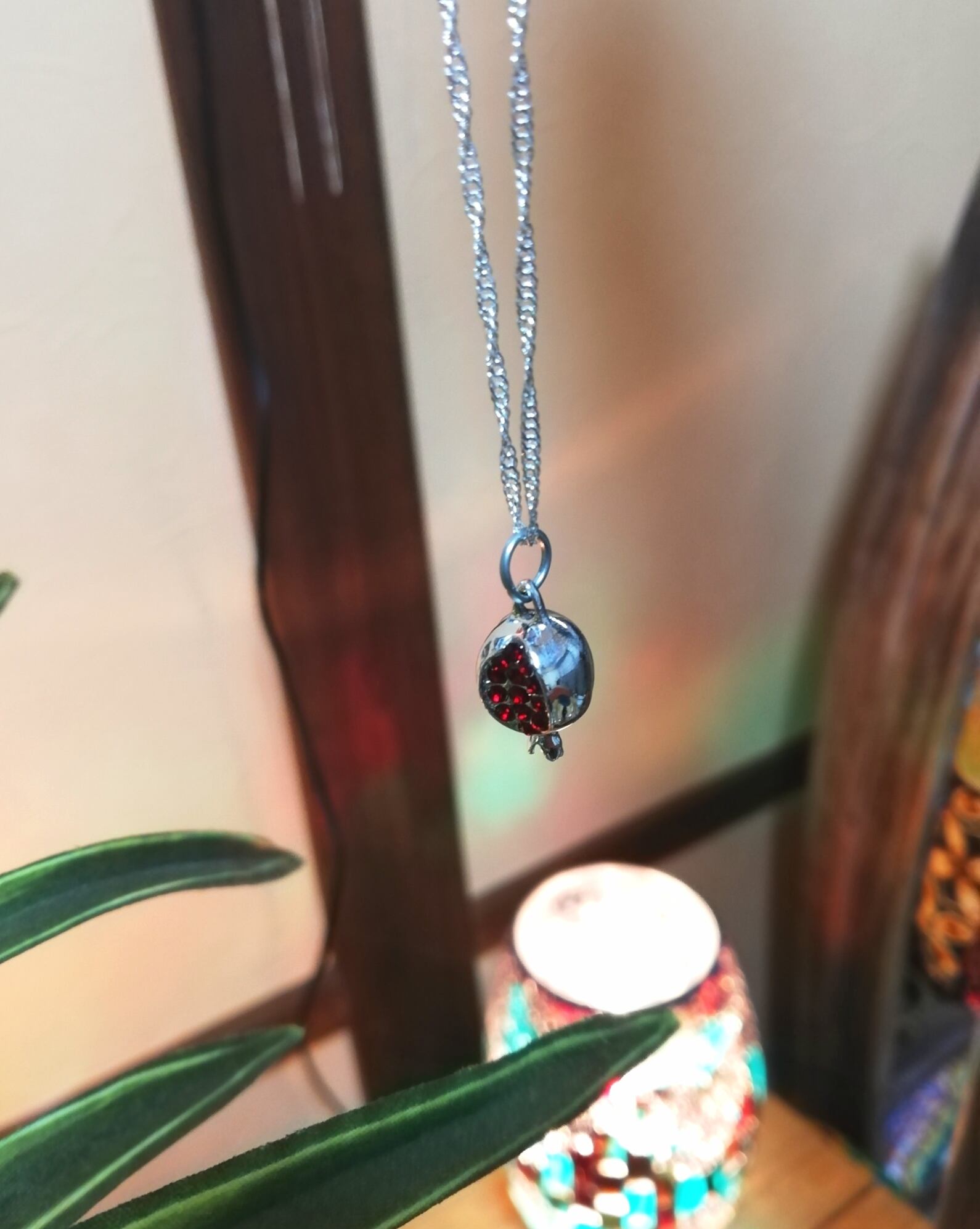 小ぶりで可愛らしいザクロをモチーフに作ったシルバーネックレスです!(^^) こちらはアルメニアンのハンドメイドの商品です! (チェーン付きでの価格となります)