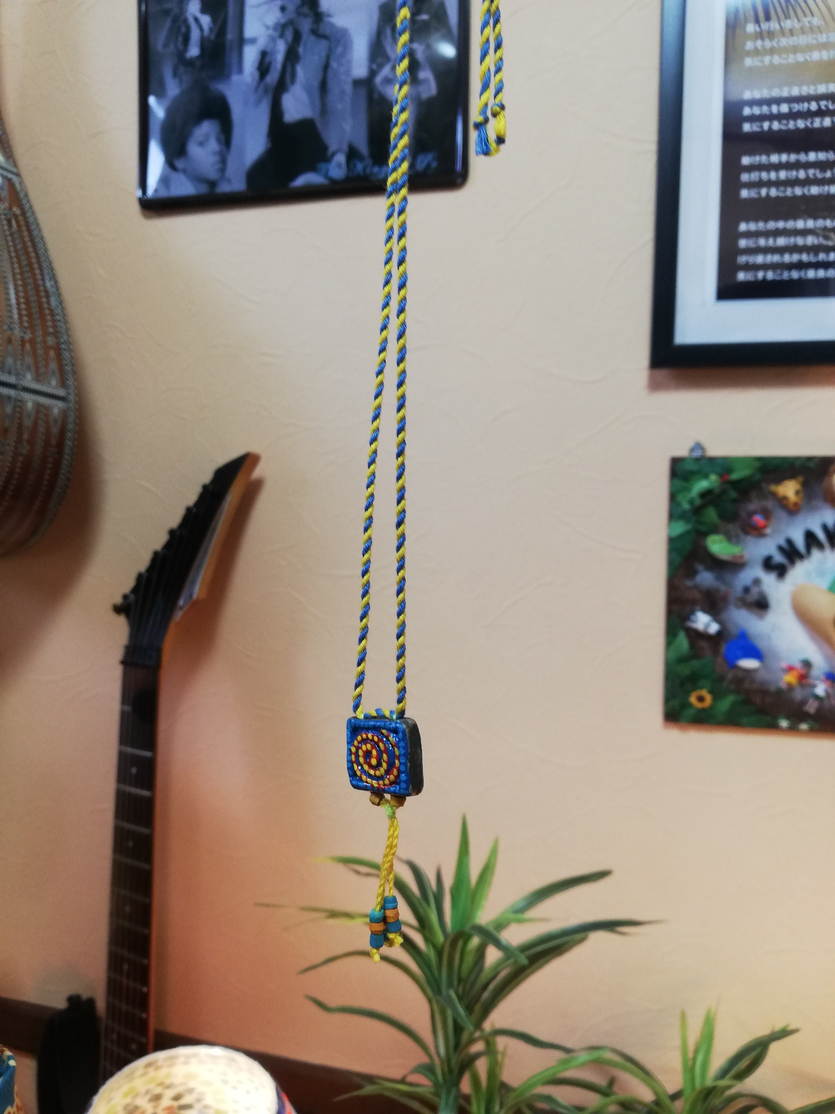 バングラデシュ色の強いデザインでとても個性的なエスニックデザインで鮮やかな紐と絵が可愛いネックレスです!(^^)