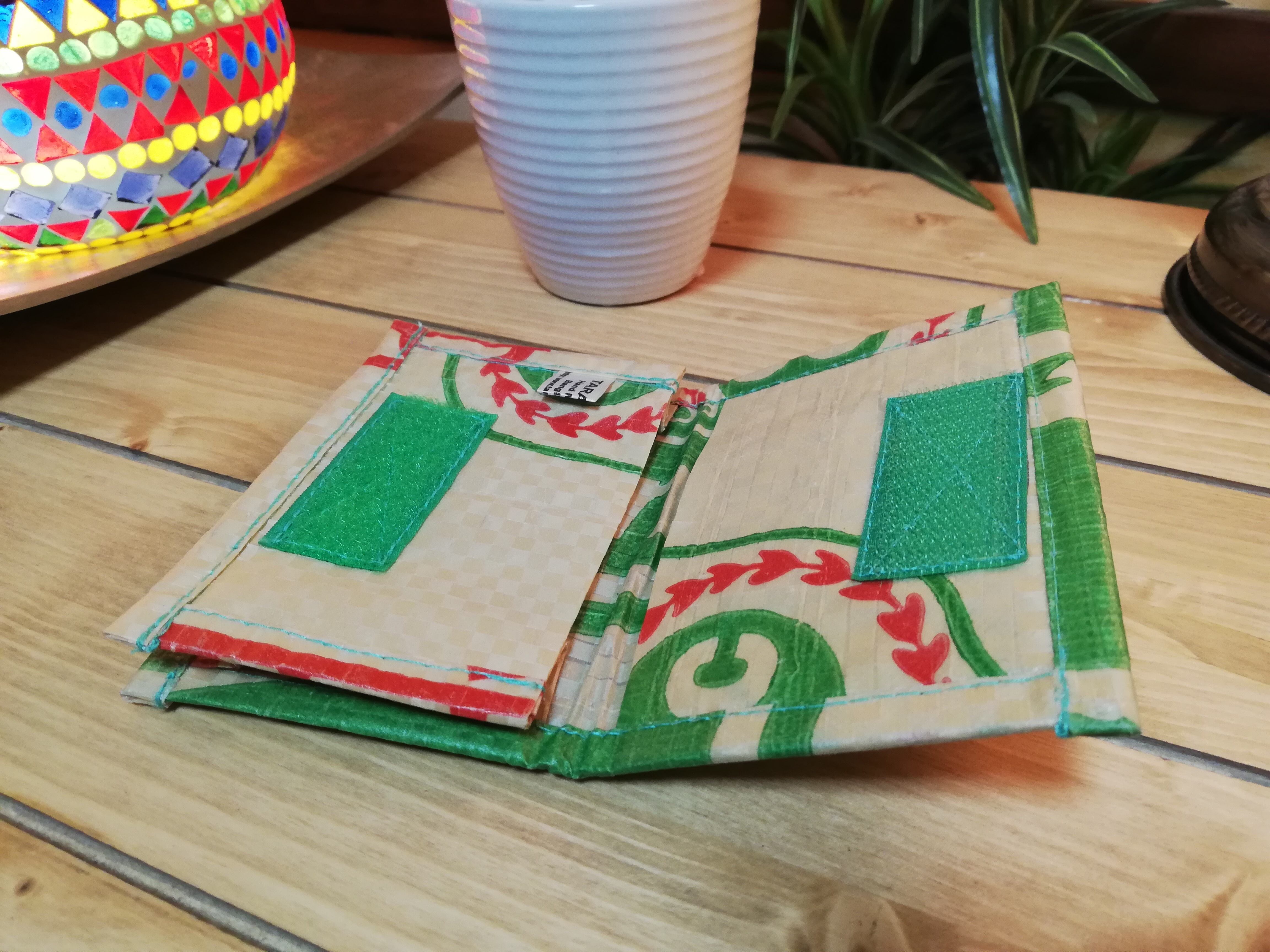 アジア最貧国バングラデシュのゴミ問題を考えリサイクルできそうな綺麗な素材を集めローカルの方が作ったウォレットセットです!(ミニポーチ、小銭入れ、スモールウォレット2つ、ノーマルウォレット一つ)