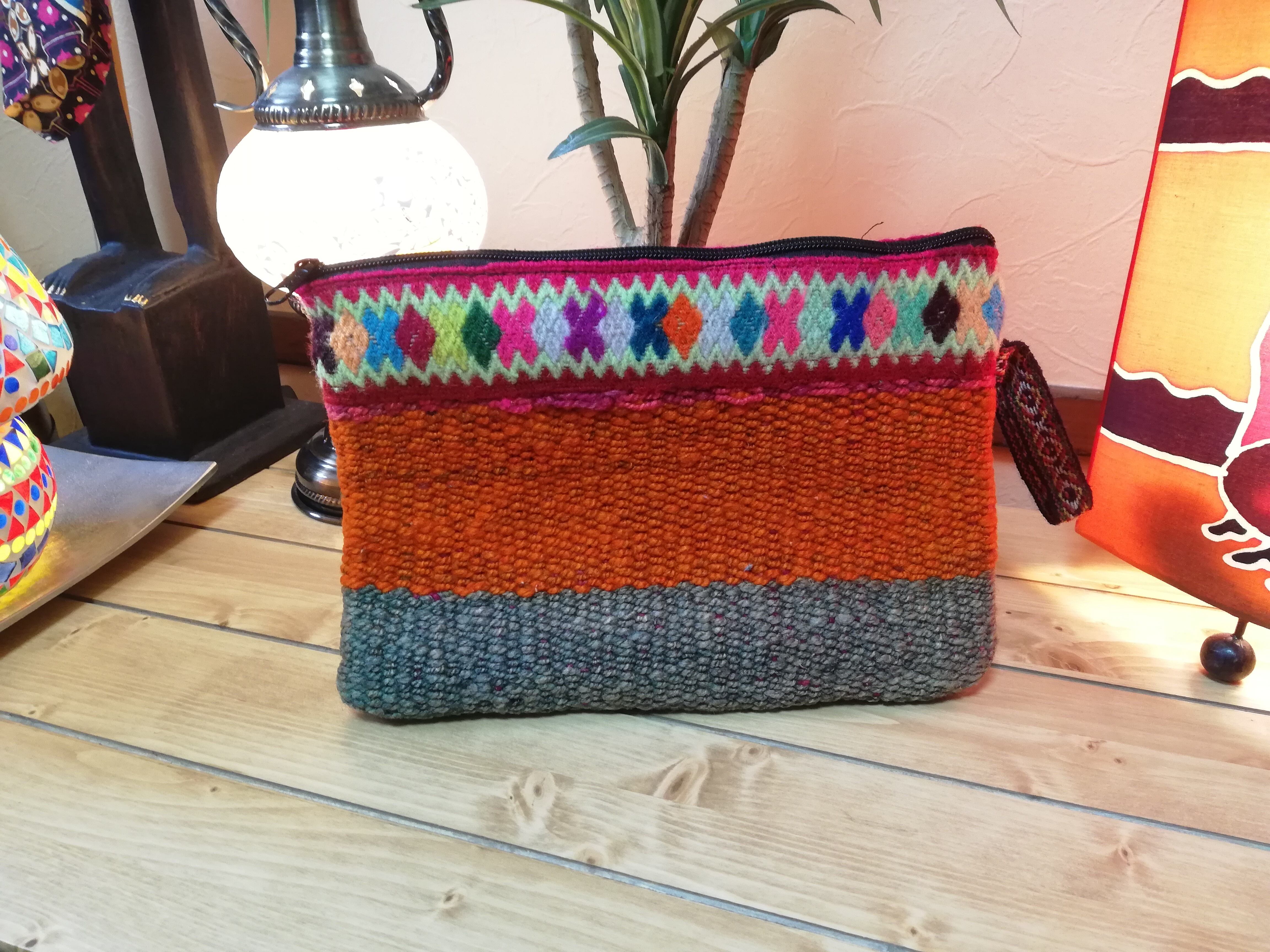 ペルー産のウール100%のポーチです!!インカのカルチャーを感じる可愛らしいデザインで生地も厚手で丈夫です(^^)
