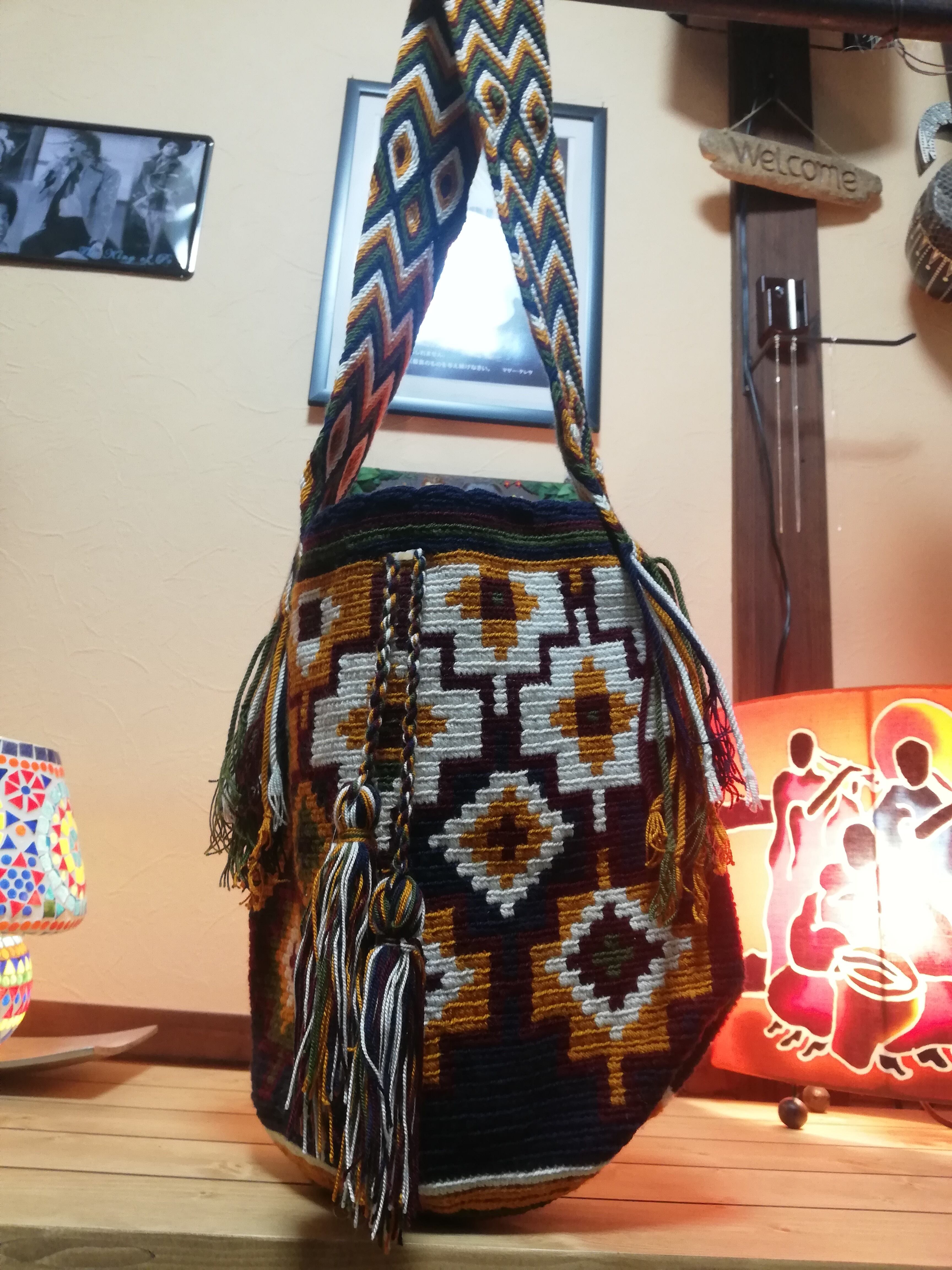 南米ペルーのハンドメイドバッグです! 生地も厚くて丈夫でとても綺麗な色合いで、南米アンデスを連想させるデザインが魅力的なバッグです!(^^)