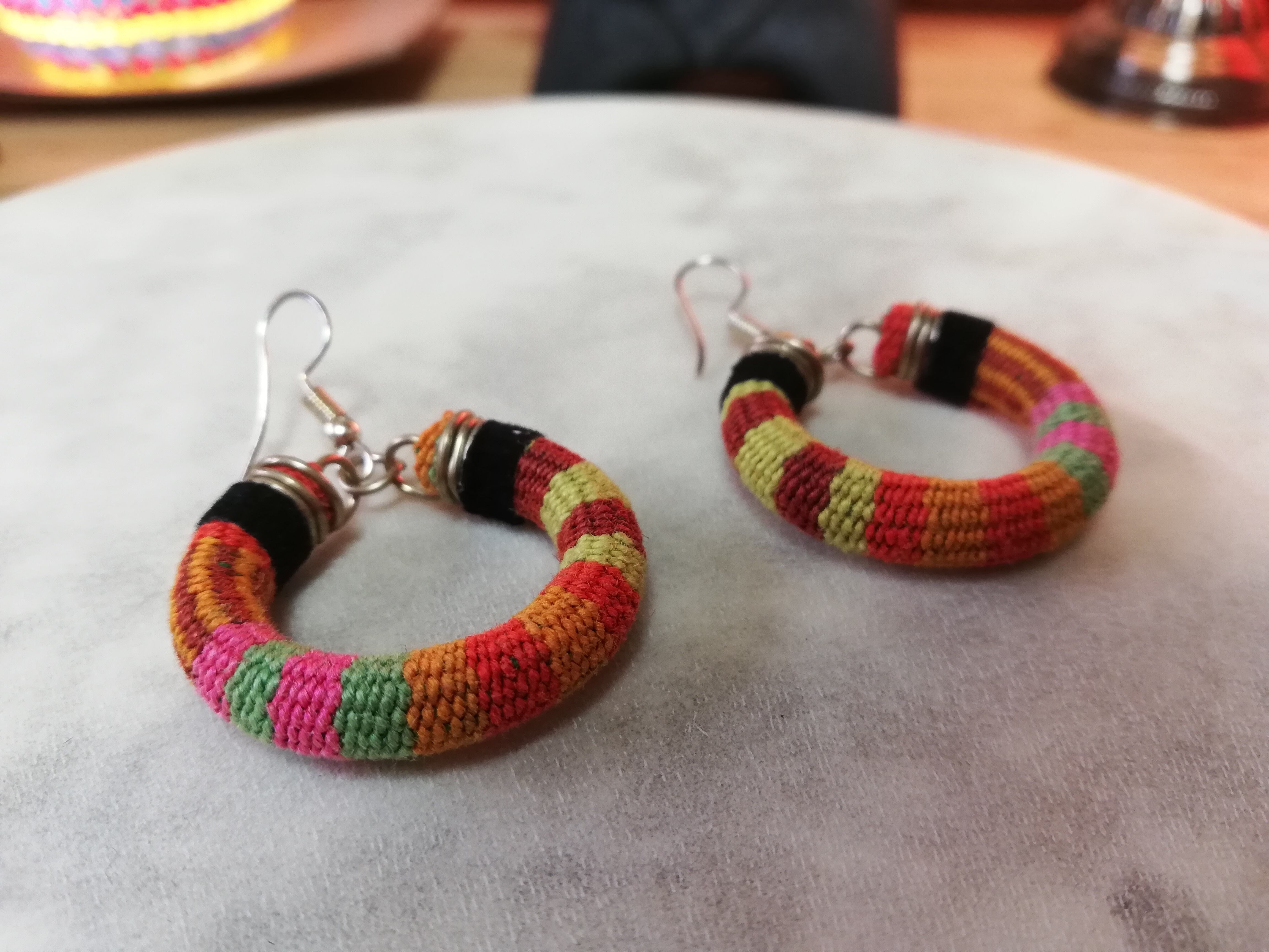 南米ペルーの生地を使ったハンドメイドのリングピアスです!(^^)