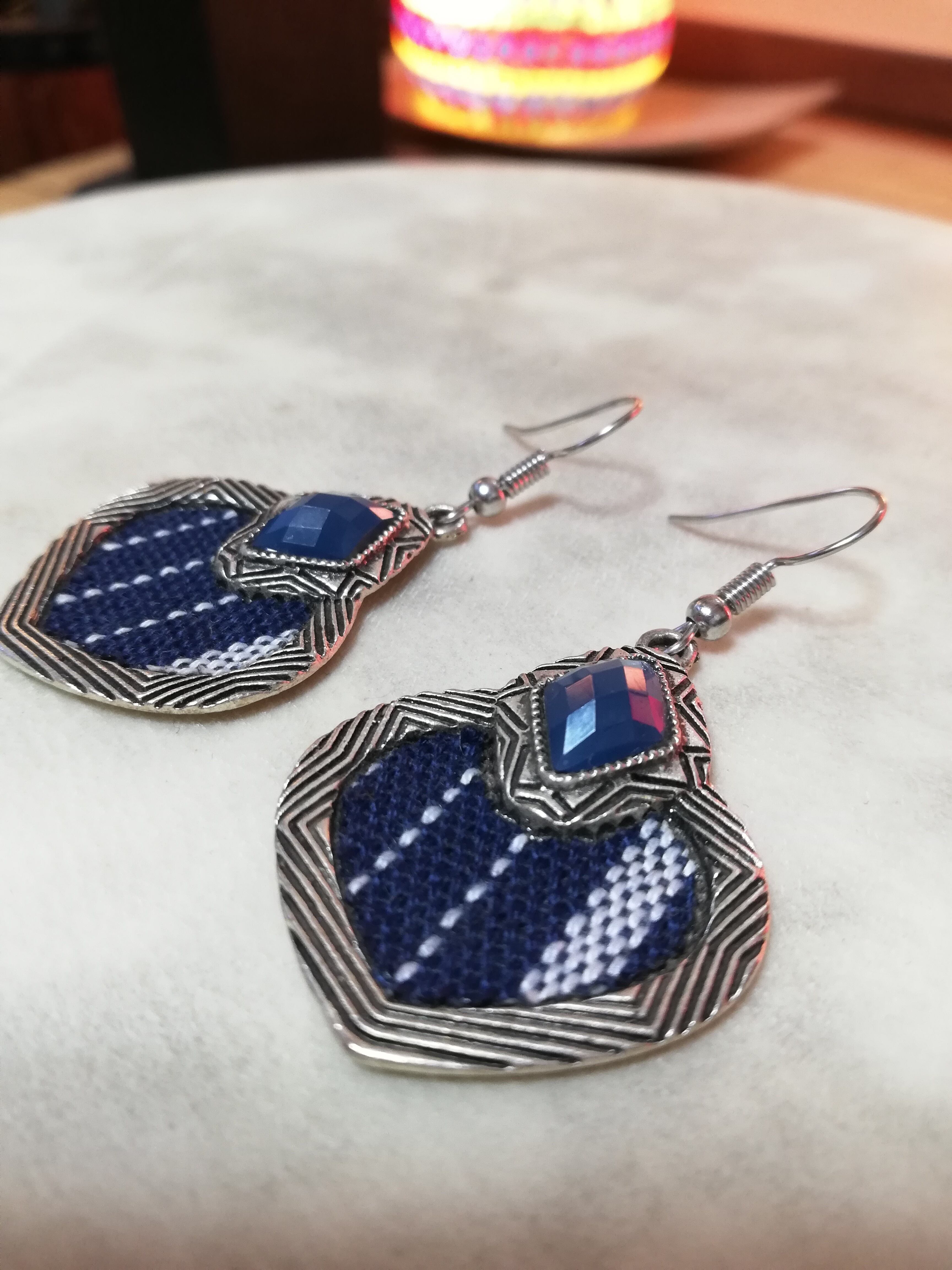 カンボジアの生地をアクセントに作ったカンボジアのハンドメイドピアスです!(^^)