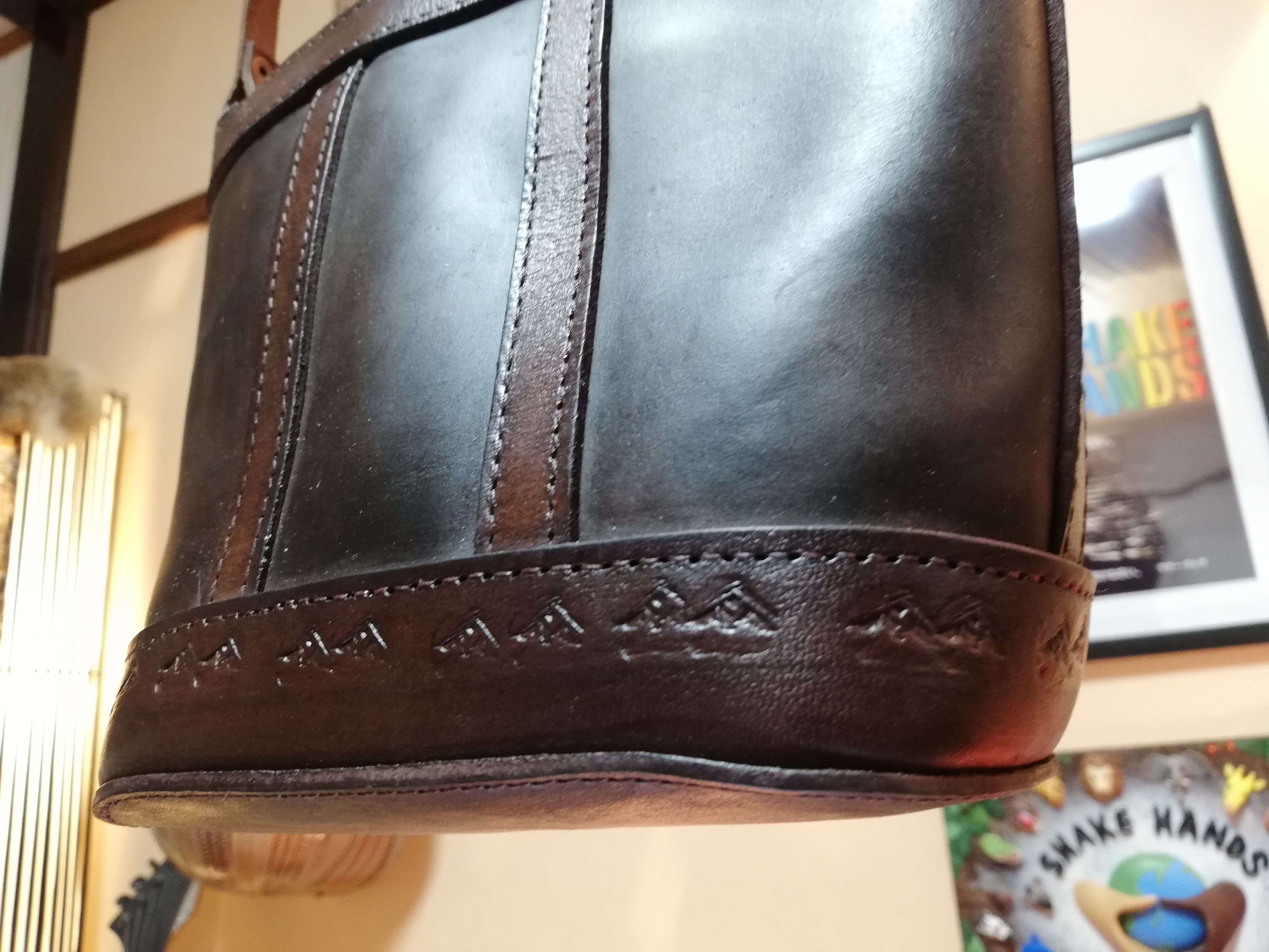 こちらは南米ペルーのレザーショルダーバッグで、インカ時代から独自の文化を築き上げてきたペルーカルチャーな雰囲気と味の出た革の色合いもとてもいい感じです!内側にもファスナーポケットが付いています(^^)