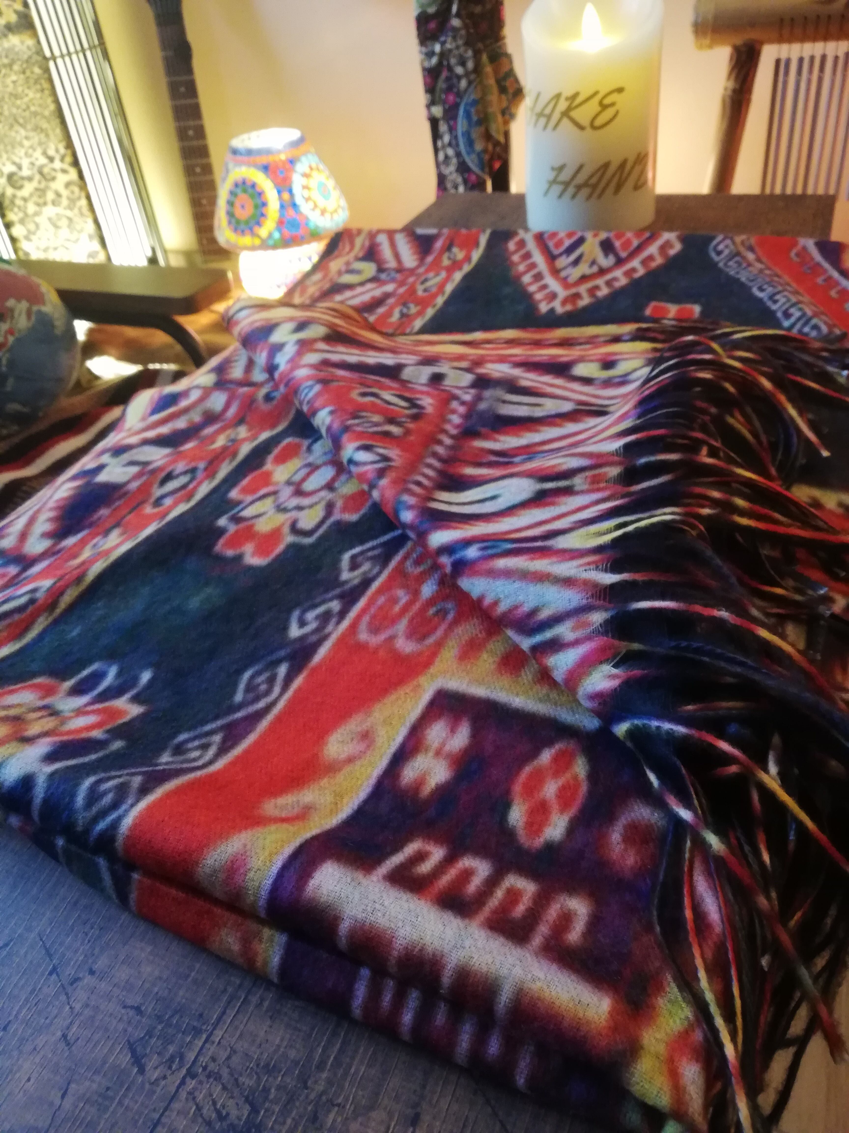コーカサス地方に位置しキリスト教発祥国アルメニアの伝統柄をデザインにしたカシミアミックスのマフラーです!!首元を暖めるだけでなくサイズも大きいので肌寒い時に広げつあさっと羽織る事もできます。是非アルメニアエスニックをお楽しみ下さい(^^)