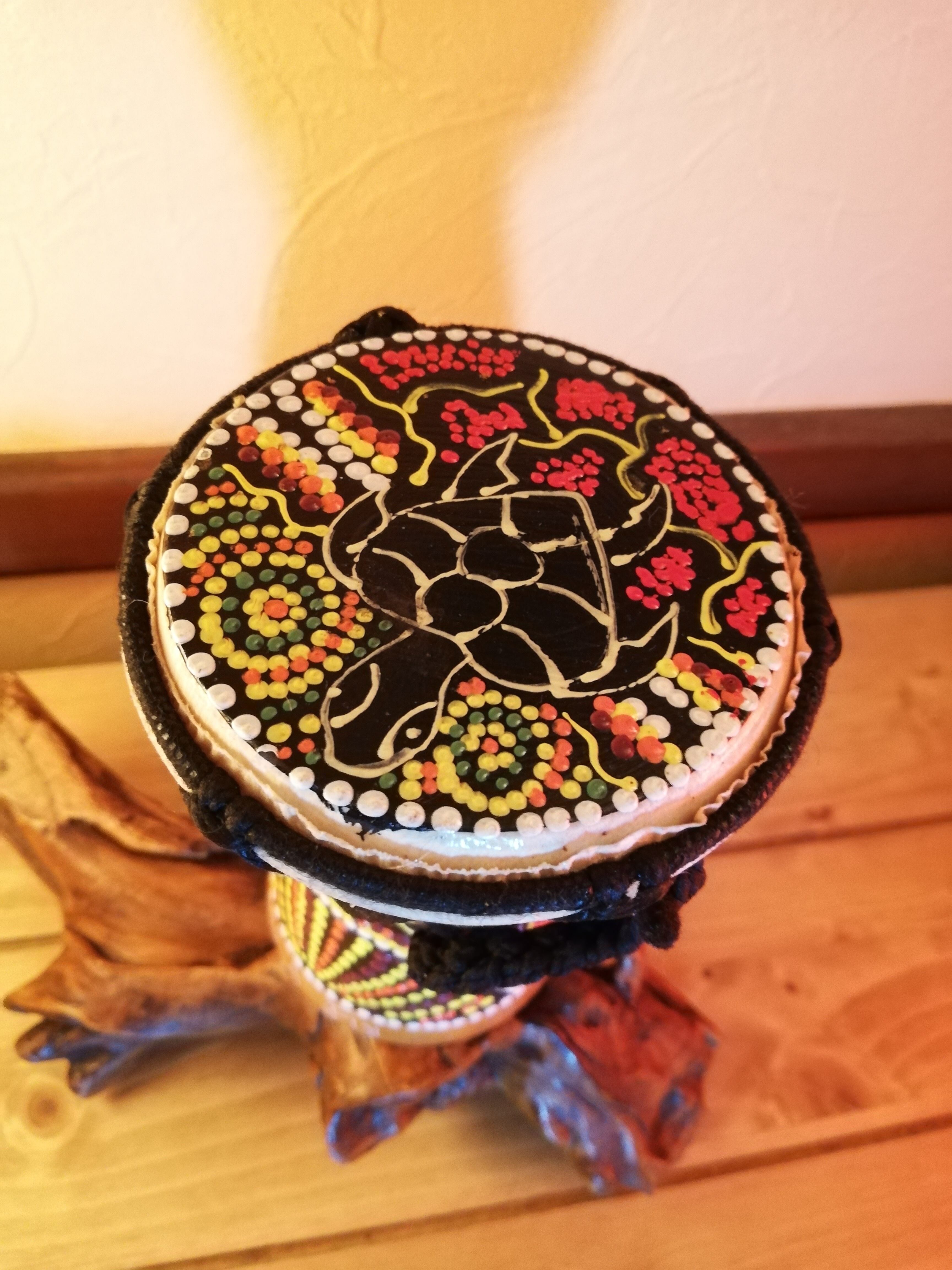 南太平洋の333の島からなるオセアニアの国フィジーのハンドメイドのミニチュアジャンベです!南国フィジーらしいウミガメのハンドペイントが可愛らしいインテリアです!(^^)