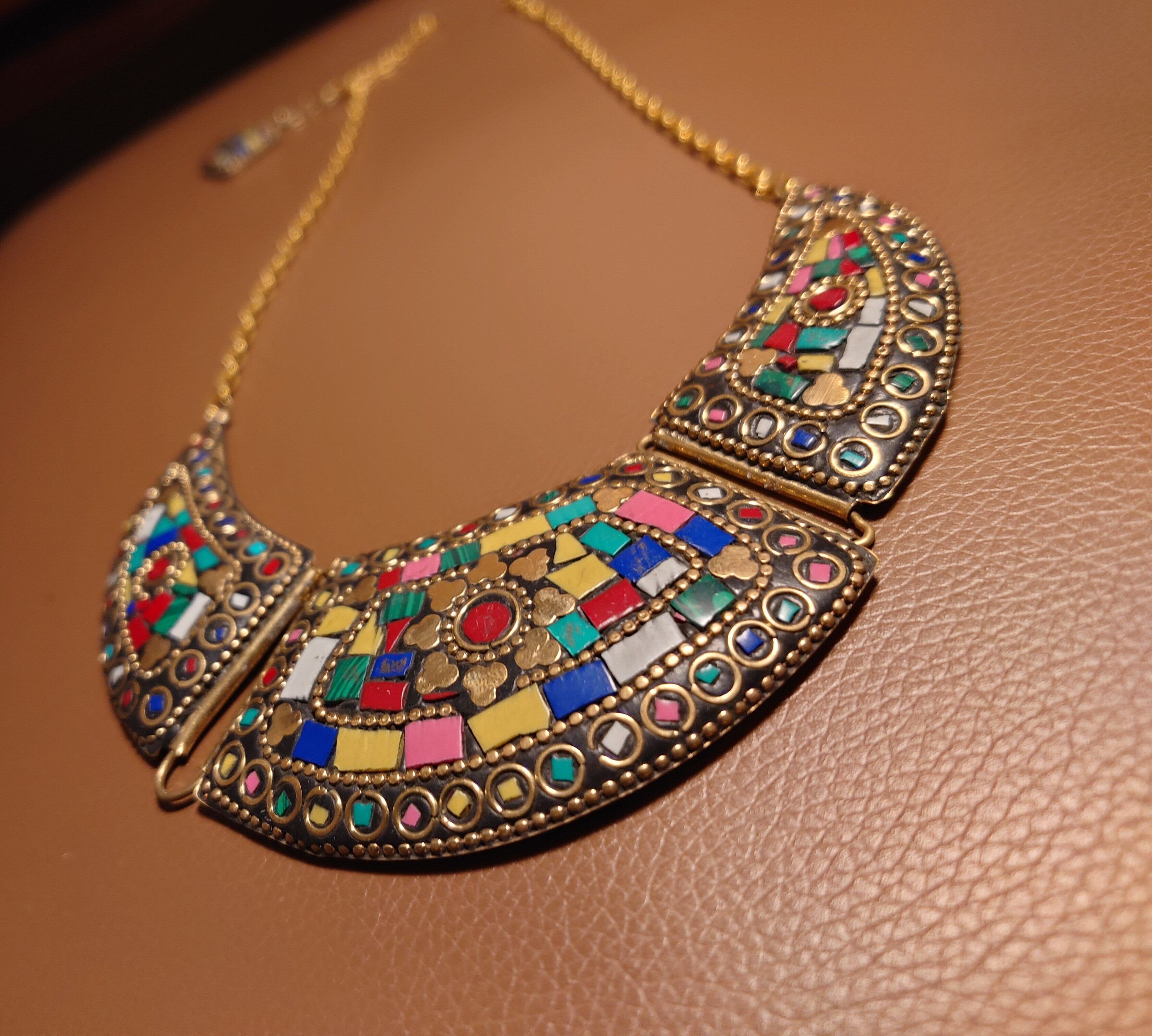 アフガニスタンのラピスラズリやカラフルなコーラルを使ったゴージャスなネックレスです☆
